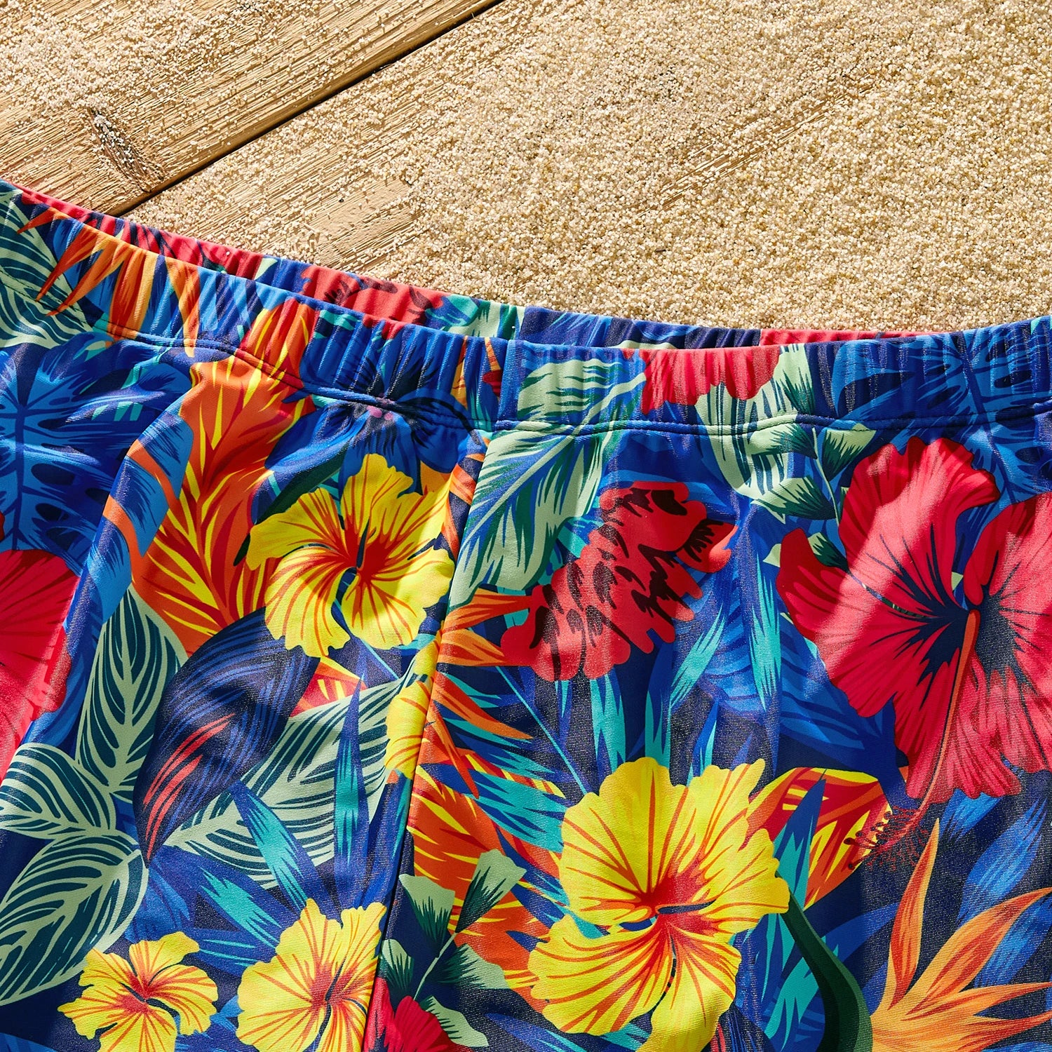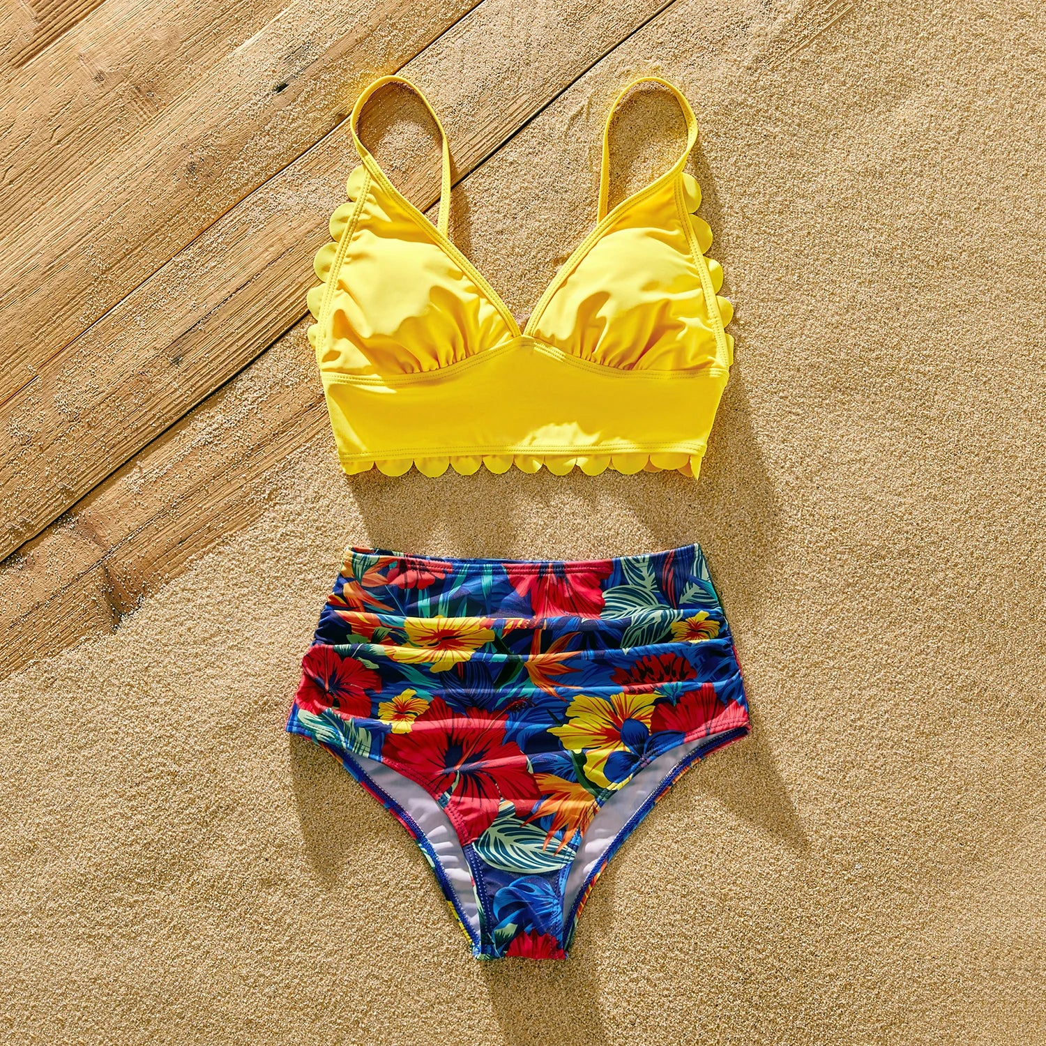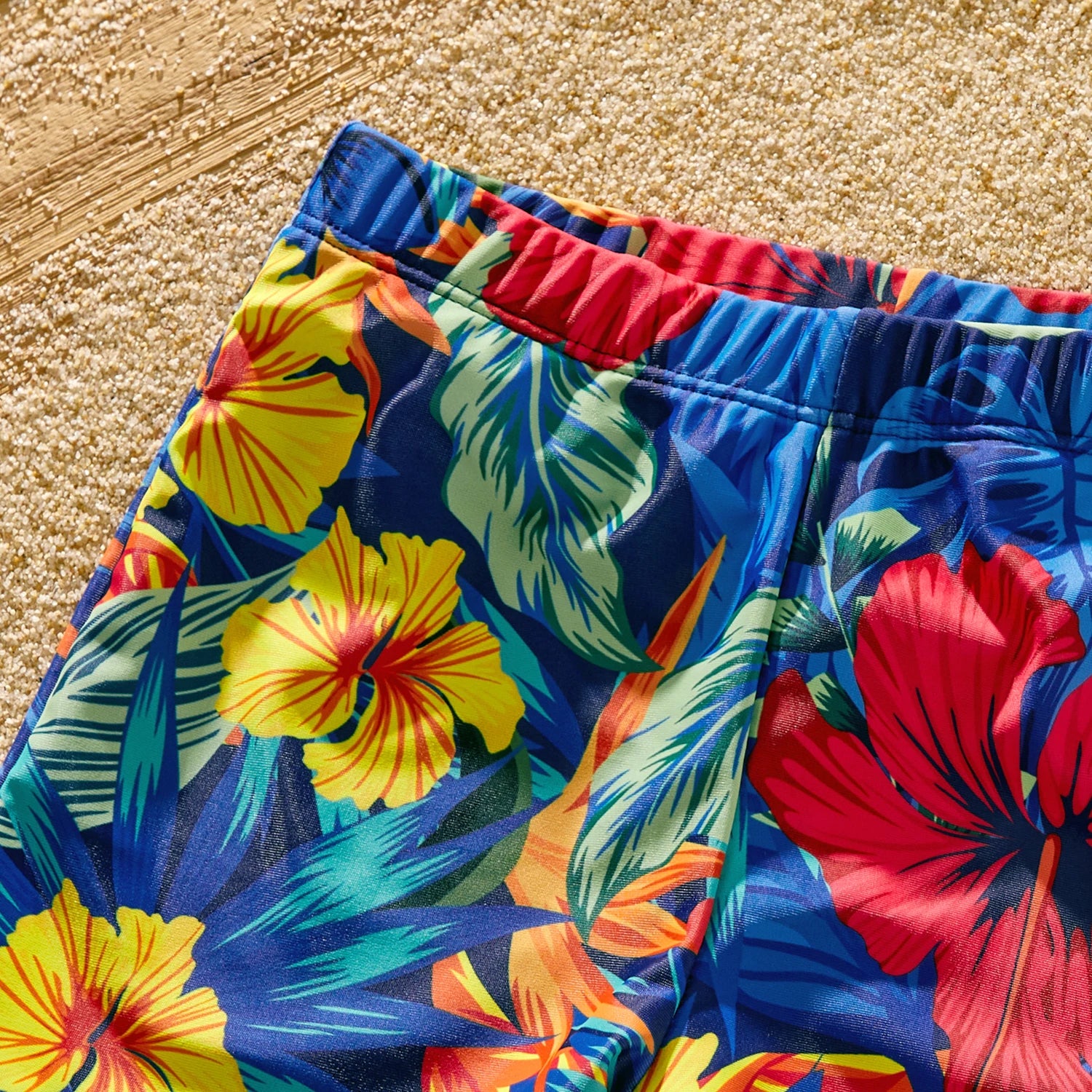 Family Matching: Solid Scallop Two-Piece & Floral Trunks