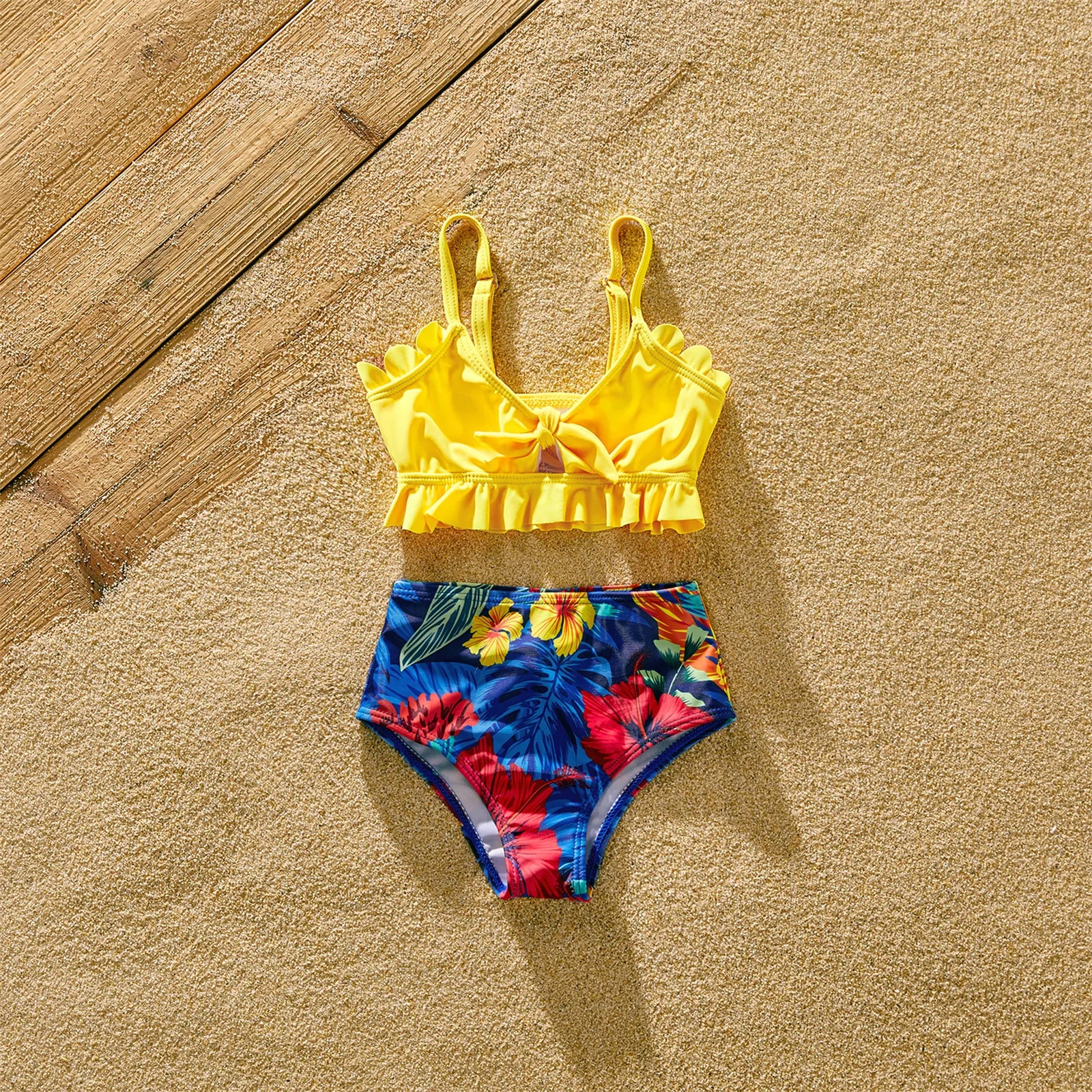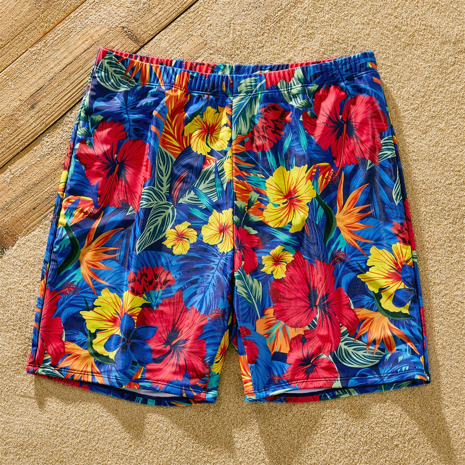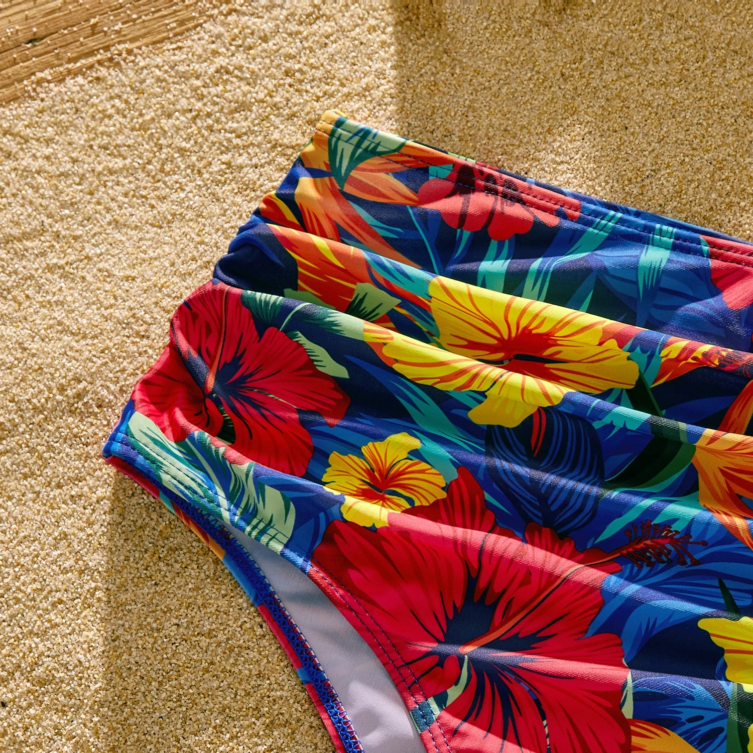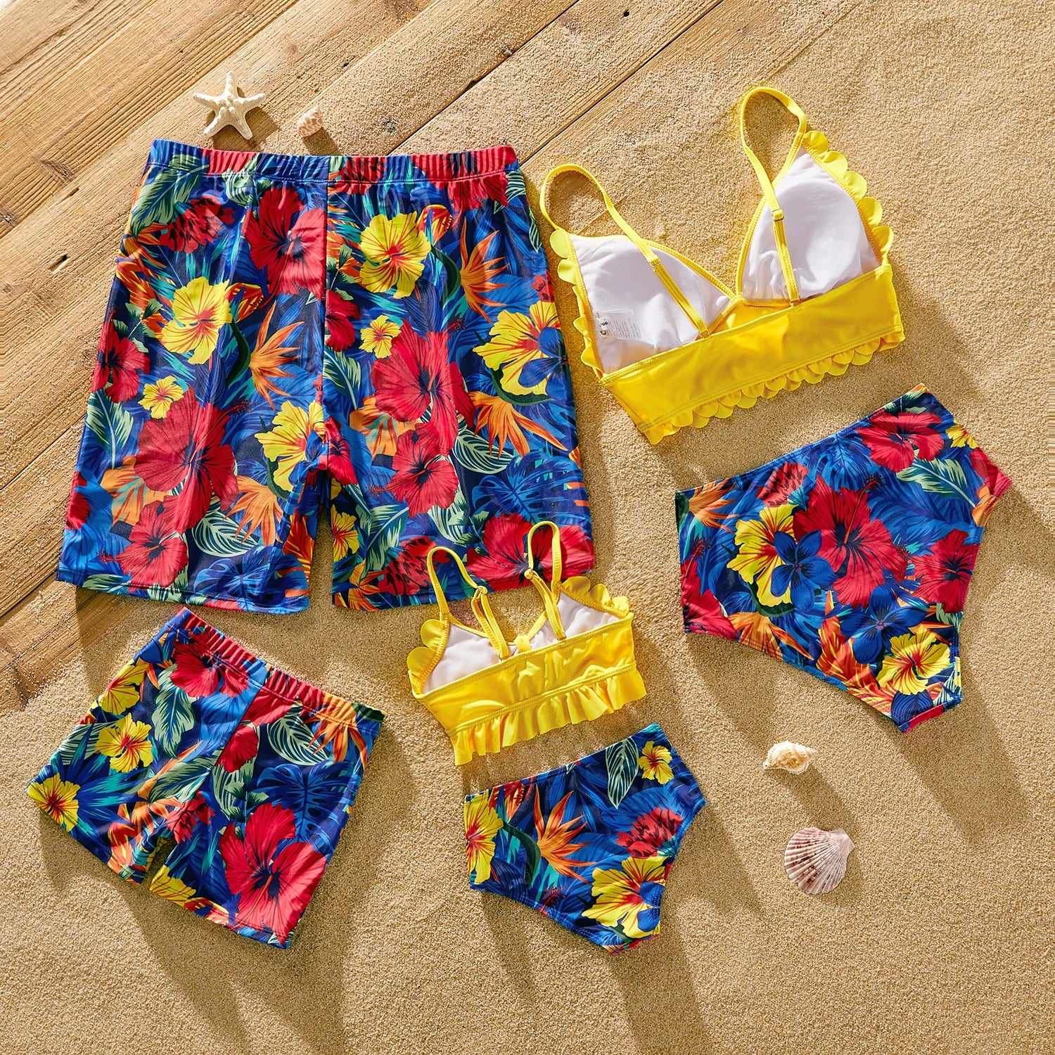 Family Matching: Solid Scallop Two-Piece & Floral Trunks