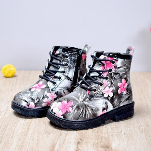 Merging something masculine and something feminine gives birth to a cool product. This pair of 3D Floral Print Boots is a marriage between something masculine and something feminine. The floral prints on the boot tone down the strong features of the lace-up combat boots. Such a cool winter fashion footwear to match your child's outfit!