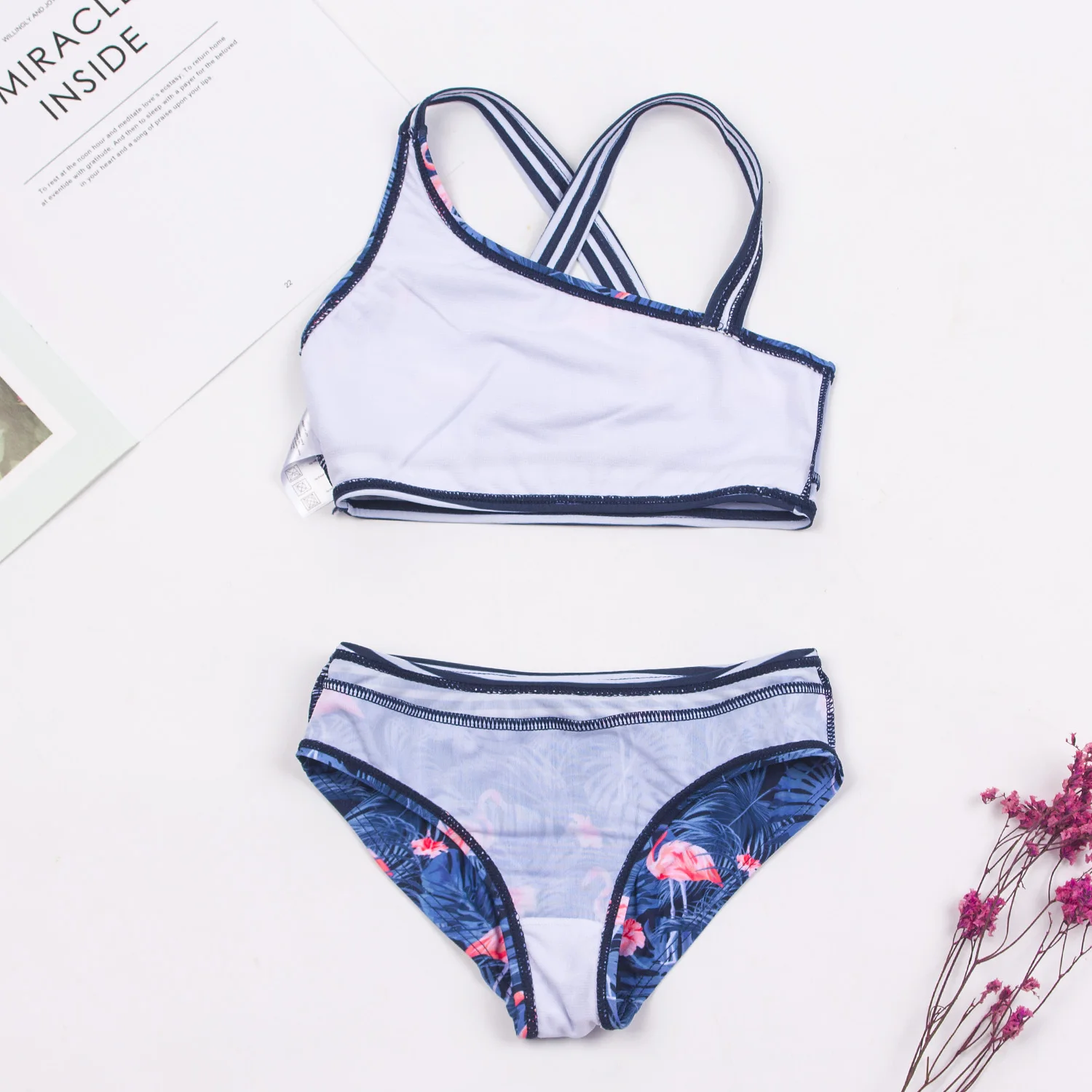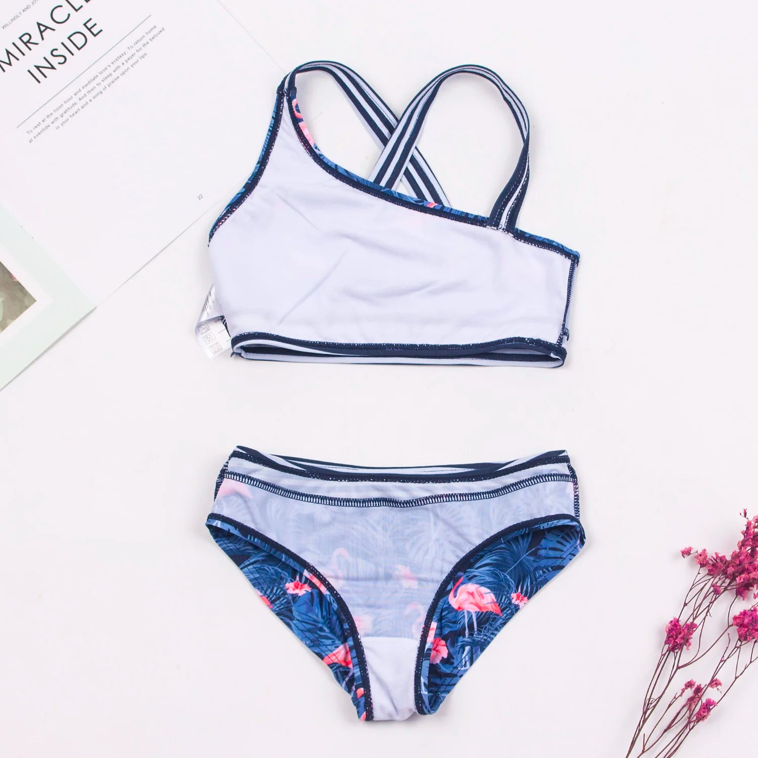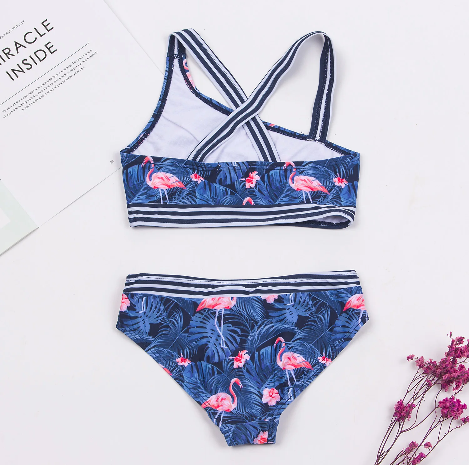 Trendy Flamingo Print: Adorned with a playful flamingo print, this bikini set adds a touch of tropical charm to your girl's swimwear collection. Perfect for pool parties or beach vacations, it's sure to make a splash wherever she goes.