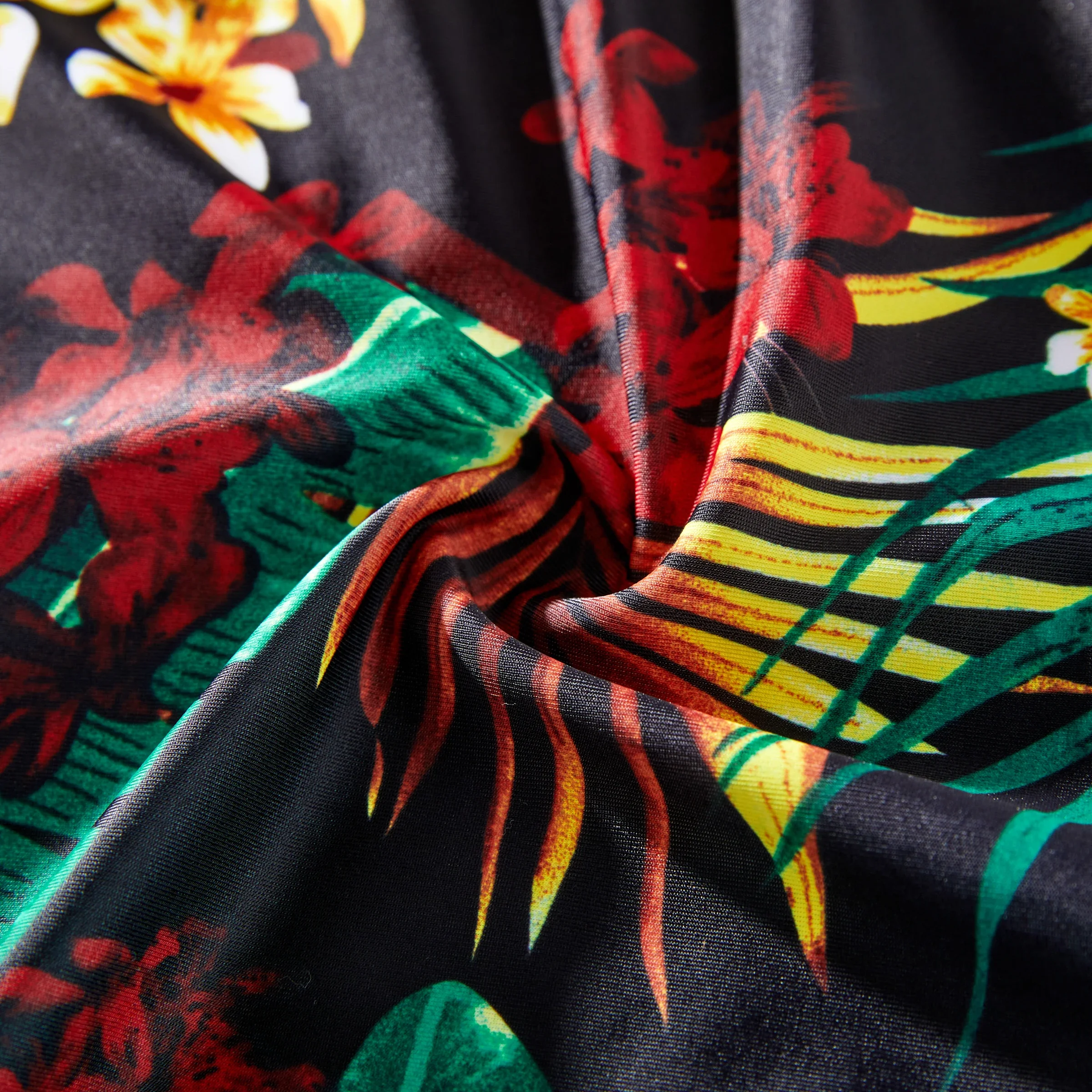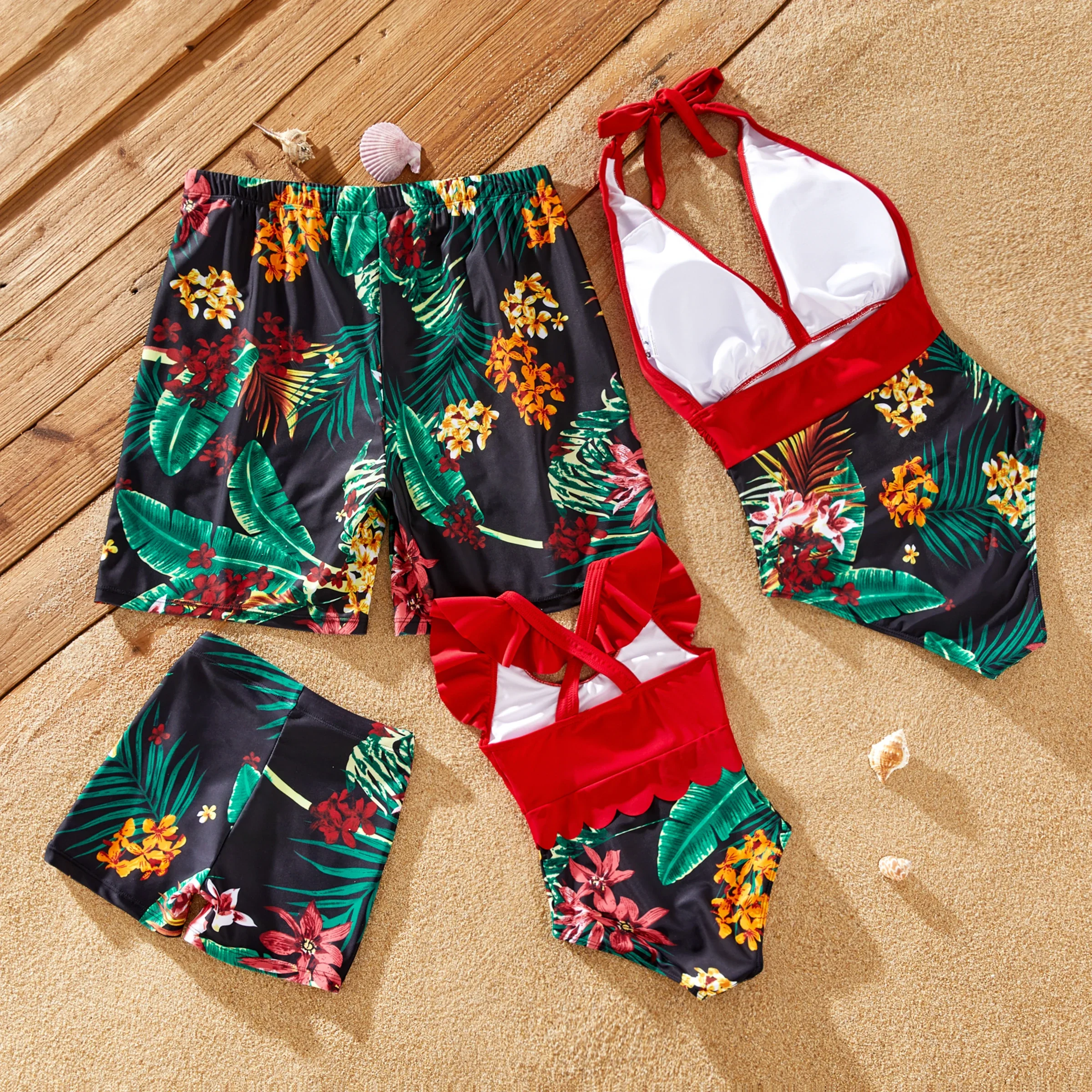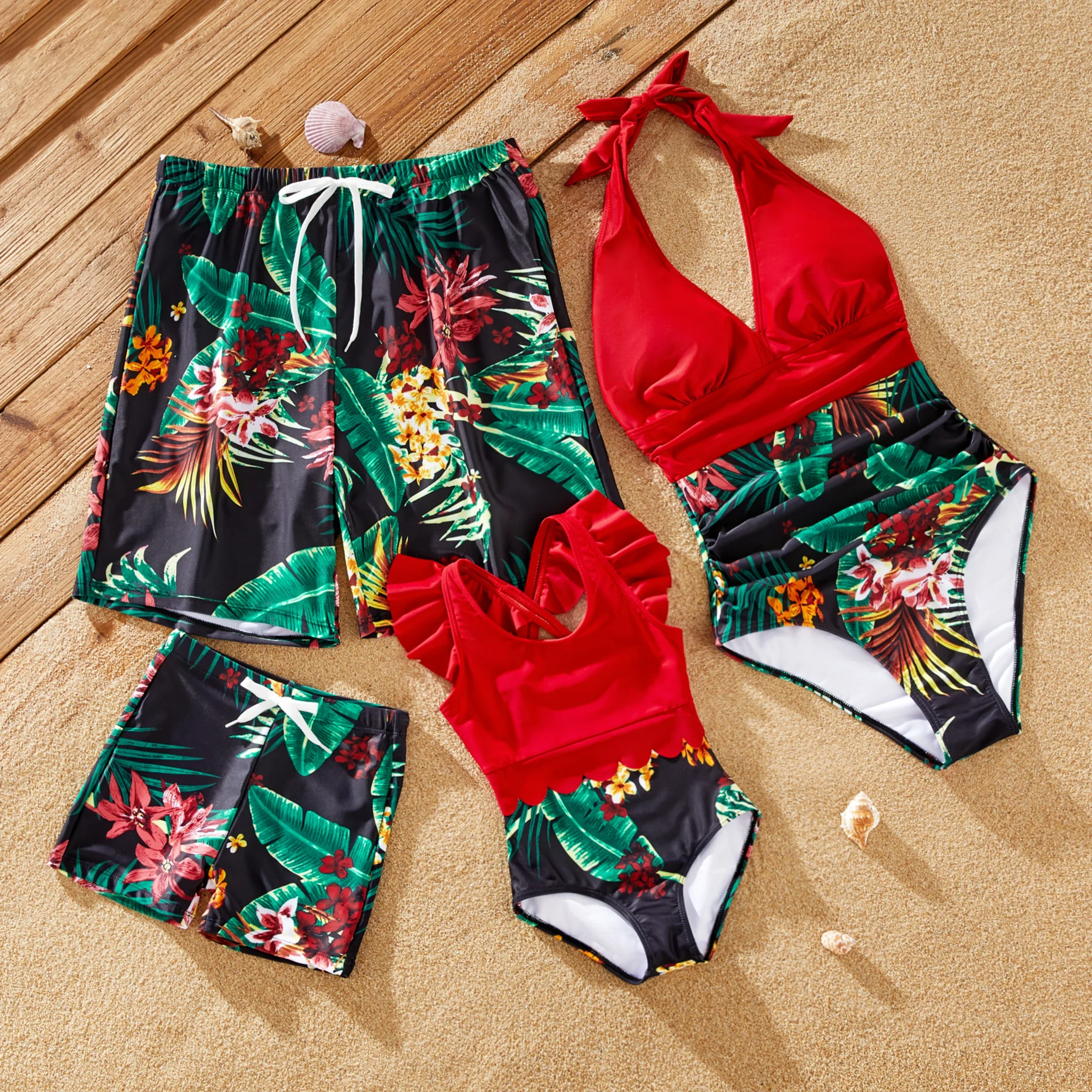 Prepare your family for a memorable summer adventure with our Floral Drawstring Swim Trunks & Halter Top Swimsuit. Made from high-quality polyester material, this swimwear set offers comfort, durability, and style for the whole family. Whether you're lounging by the pool or exploring the beach, our tropical paradise swimsuit is sure to make a splash wherever you go. Order now and get ready to soak up the sun in style!