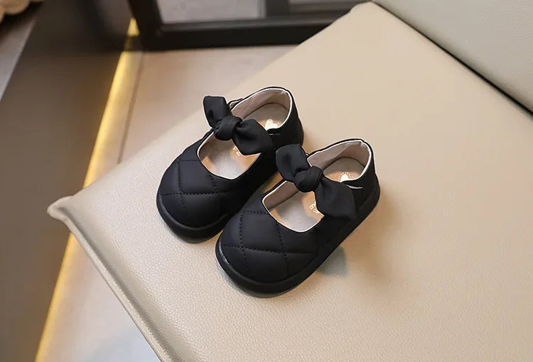 Step into Style and Comfort with Our Girls' Bow Leather Shoes!