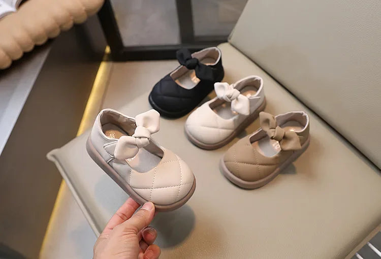 Introducing Our Girls' Bow Leather Shoes: Soft Spring/Autumn Style