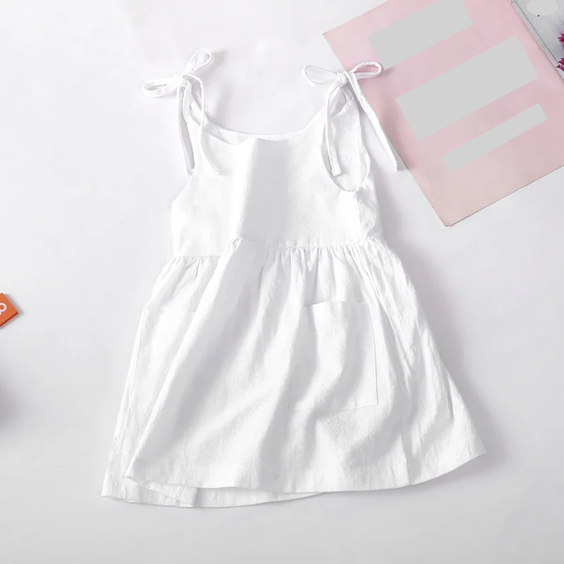Girls' Summer Suspender Dress: Solid Color with Pocket