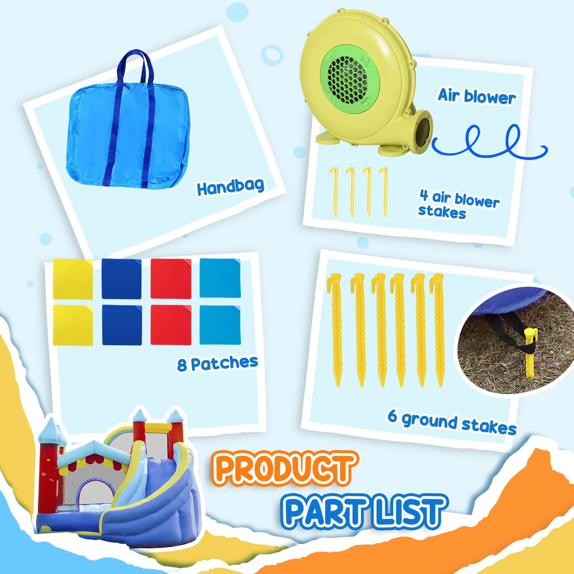 Kids Bouncy Castle with Slide, Trampoline, Water Pool, and Climbing Wall, Large Inflatable Activity Park with 450W Blower and Ground Stakes (Max 90 KG)