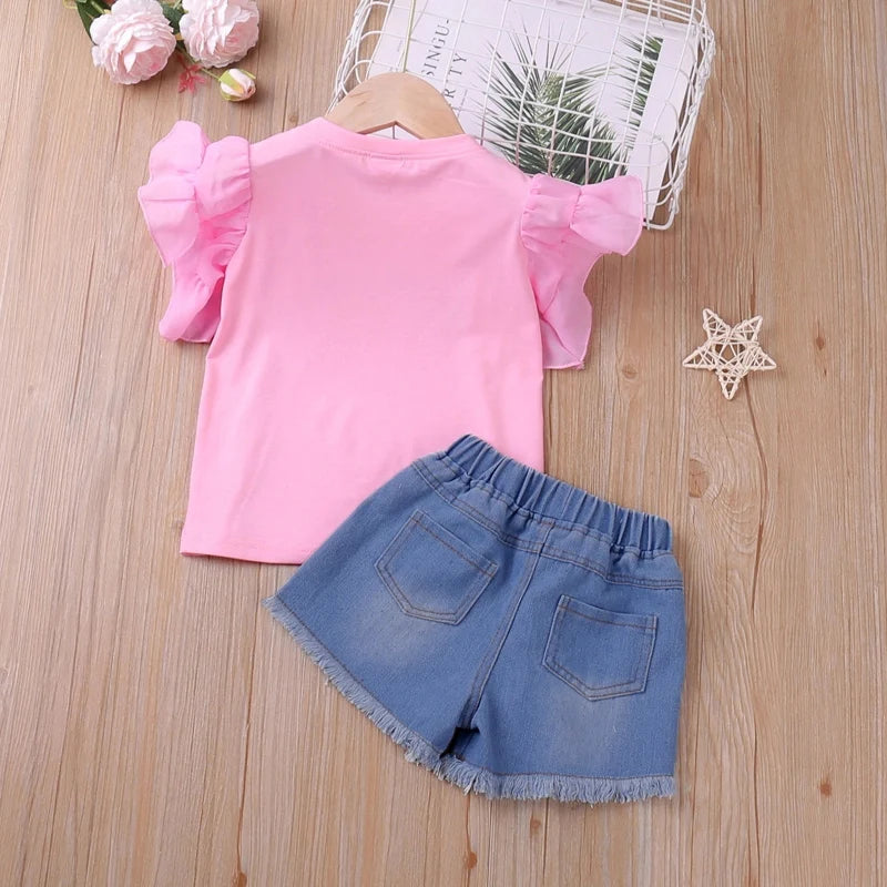 Perfect for summer adventures, our sets feature an O-Neck collar and short butterfly sleeves, providing a stylish and breezy look for your little one. The pullover closure ensures ease of dressing, making it convenient for both parents and kids.