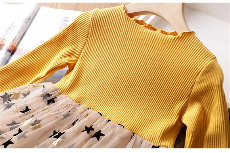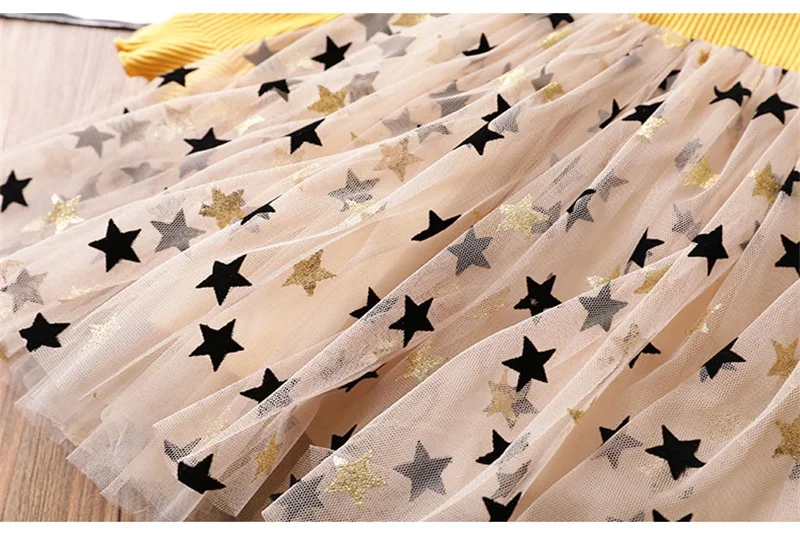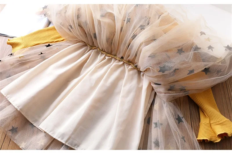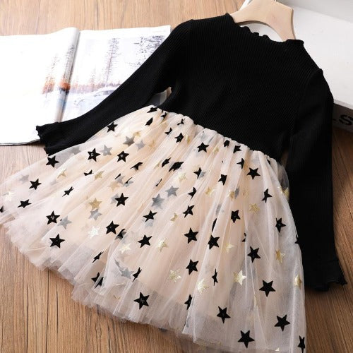 Long Sleeve Top Star Mesh Girl Dress