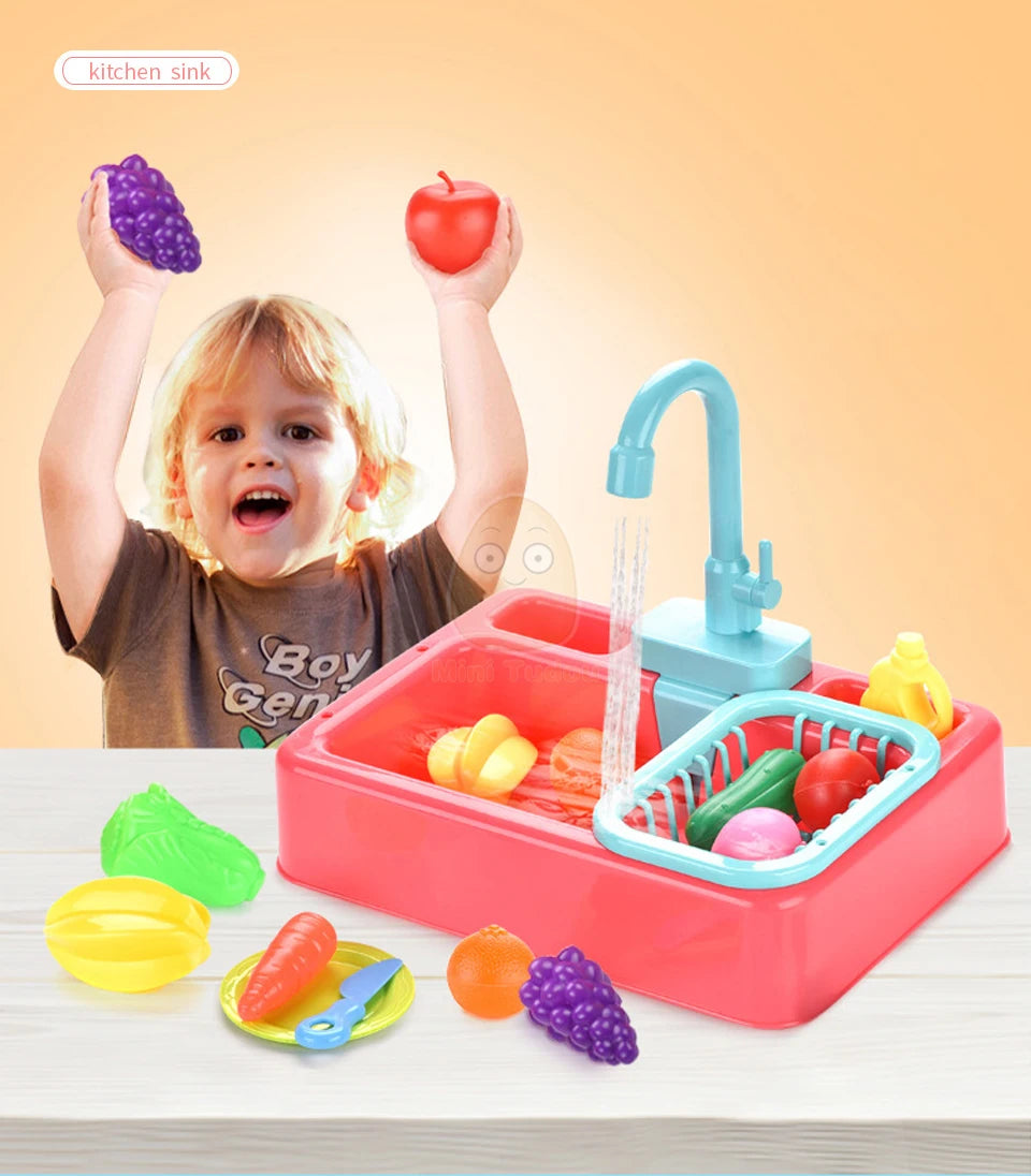 Unique Features: Just fill the base of the sink with water, turn the handle, and watch as water pours from the faucet, mimicking the real kitchen experience. With our unique water circulation system, there's no need for constant refilling, and no water goes to waste during playtime.