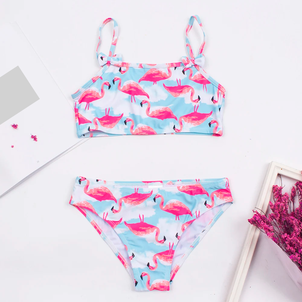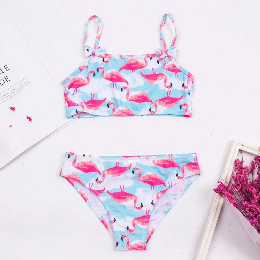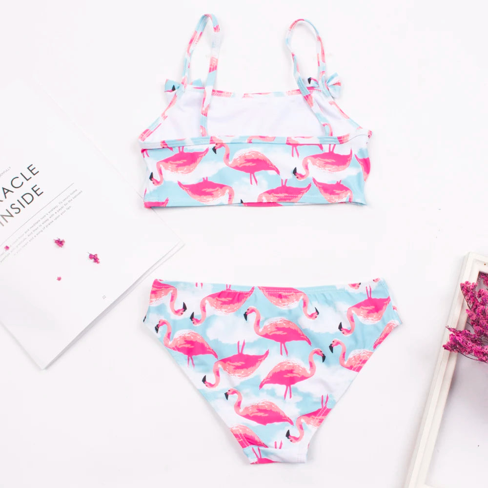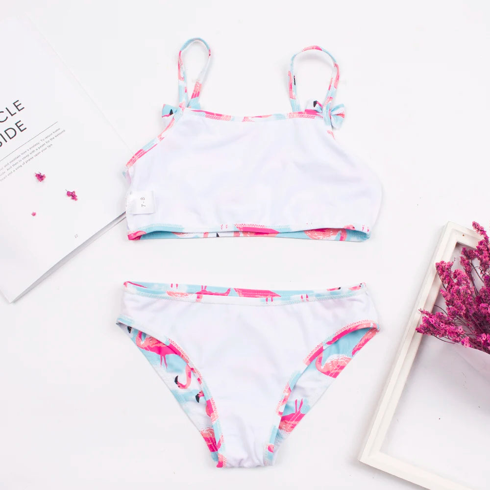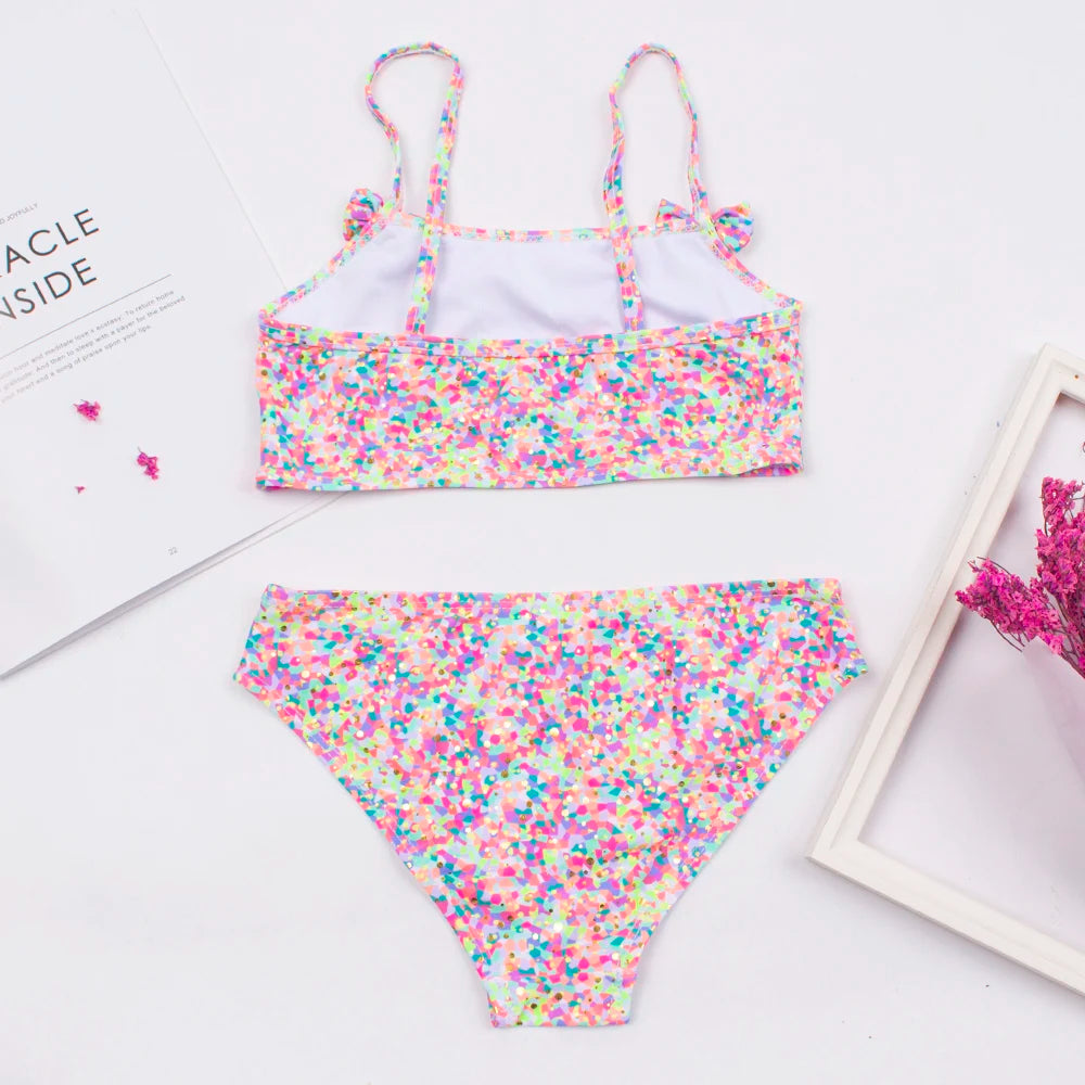 Chic Design: Adorned with a charming print and bow deco, this bikini set adds a touch of elegance to your child's swimwear collection.