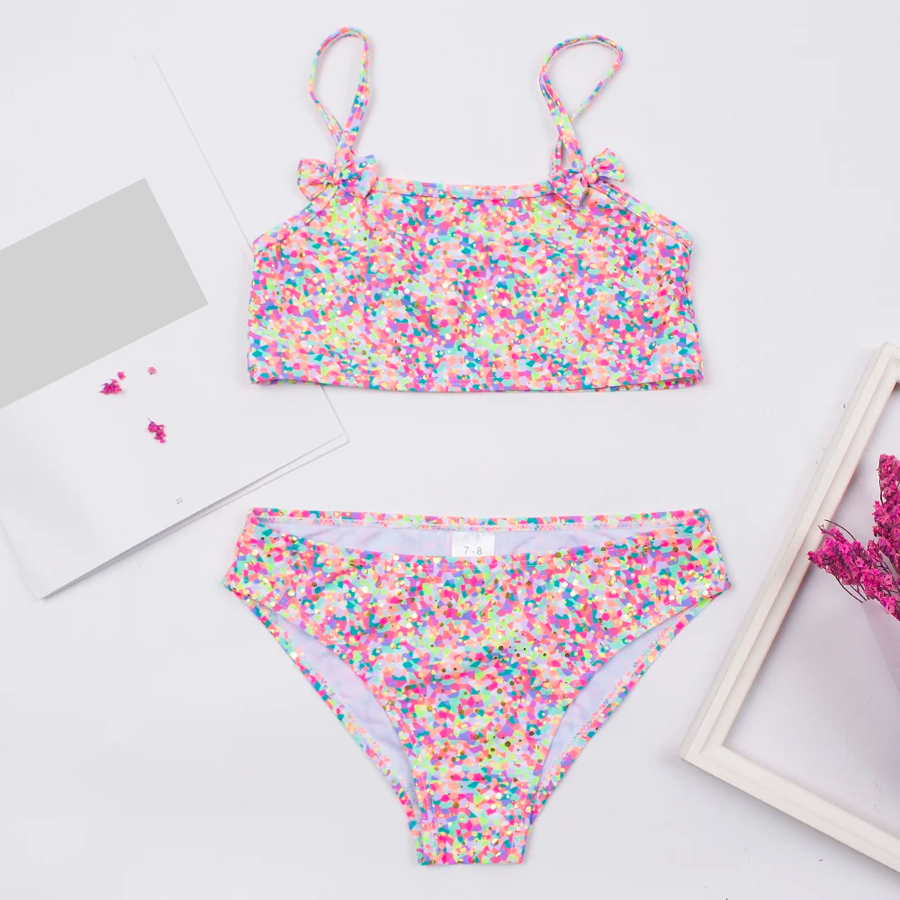 Introducing our luxurious offering: Print Bow Deco Bikini Set for Kids!