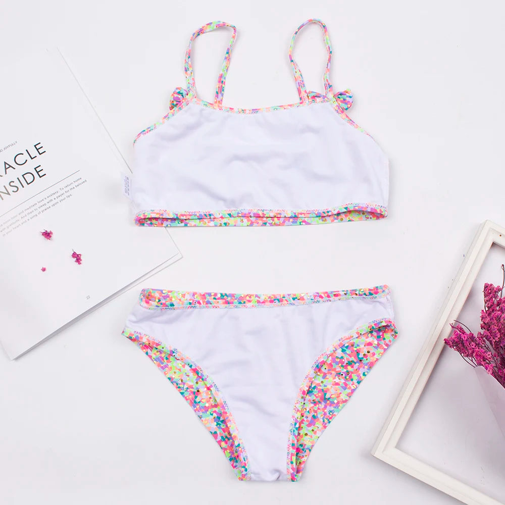 Luxurious Features: Our bikini set boasts a range of luxurious features to enhance your child's swimming experience. From anti-pilling and anti-shrink properties to anti-fade technology, this set is designed to maintain its pristine appearance wash after wash. Additionally, its quick-dry and breathable materials ensure your child stays comfortable and dry throughout the day.