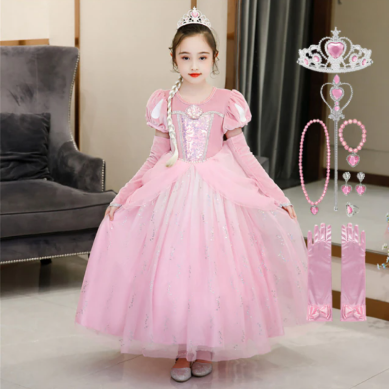 Puff Sleeve Layer Skirt Pink Princess Gown