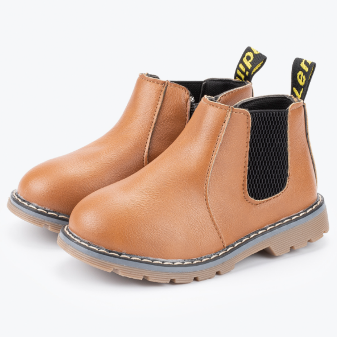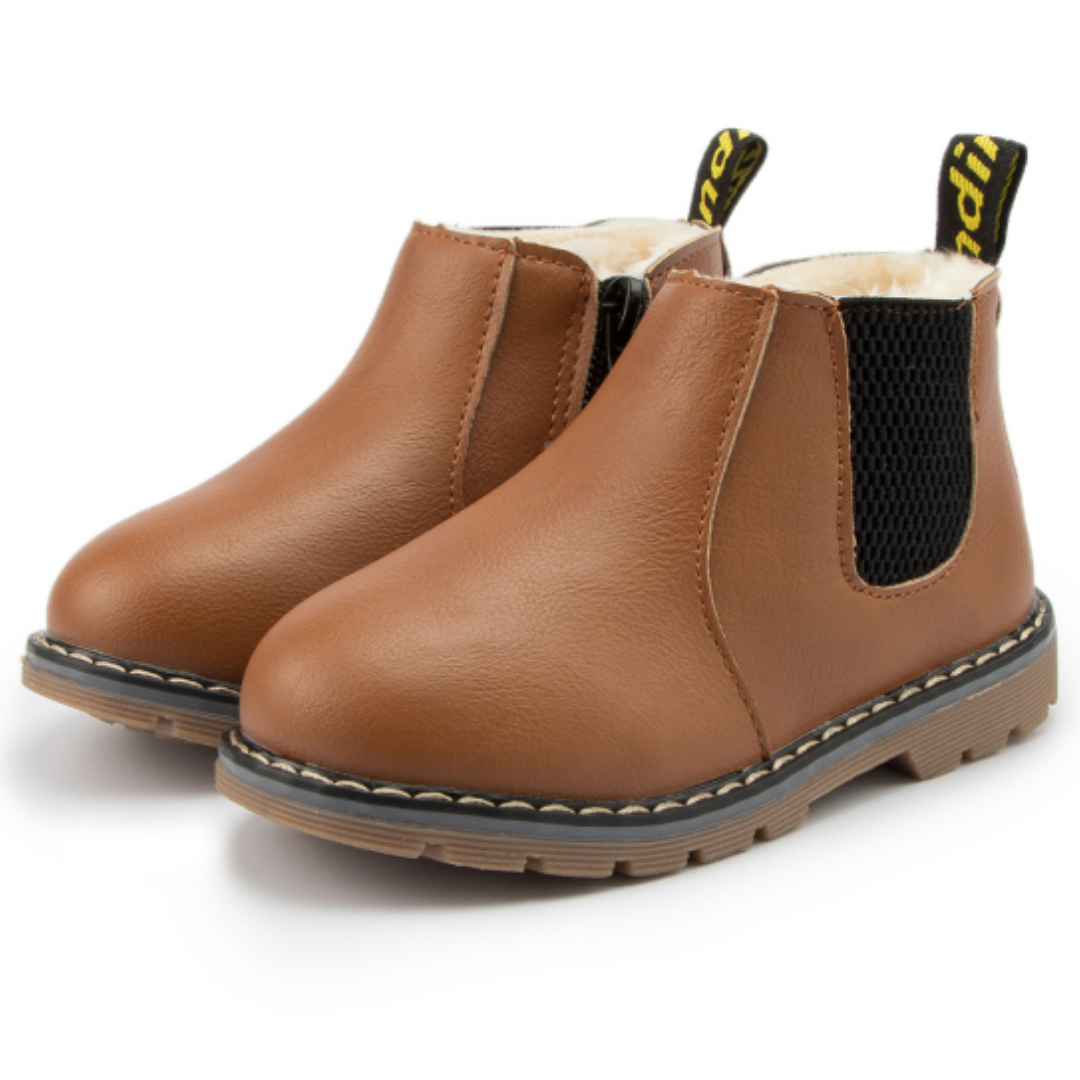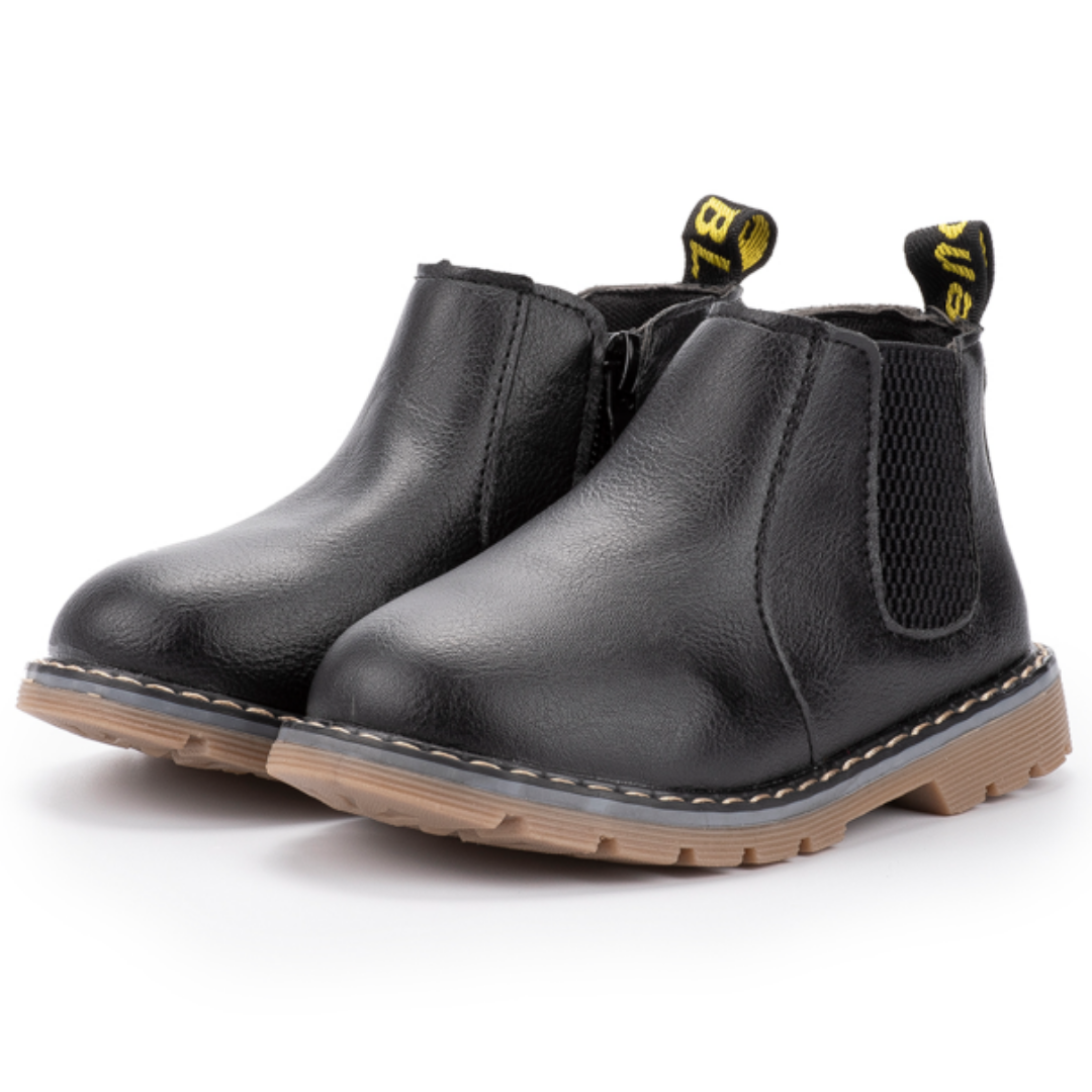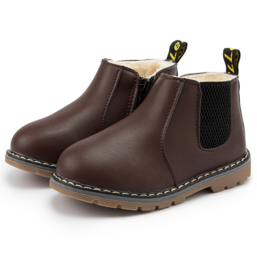 Side Zipper Non Slip Rubber Sole Kids Leather Winter Shoes