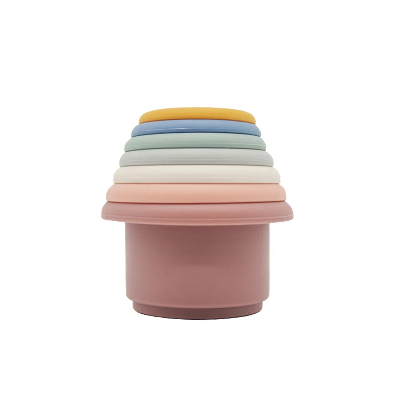 Introducing our innovative Silicone Stacking Cups, designed to make learning fun for your little one! Crafted with high-quality ABS material, these cups serve a variety of functions, making them suitable for beach play, bath time, and indoor activities.
