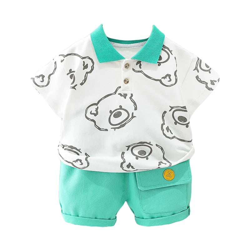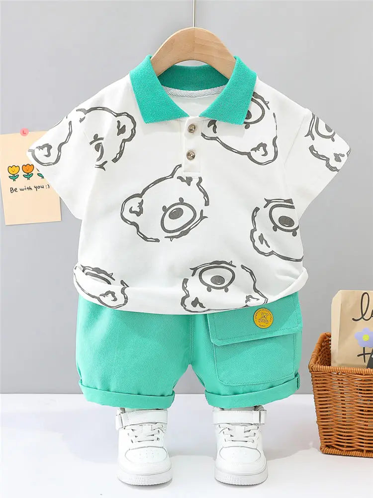- Adorable Design: Featuring a charming cartoon bear print, this set adds a playful and trendy touch to your child's summer wardrobe.