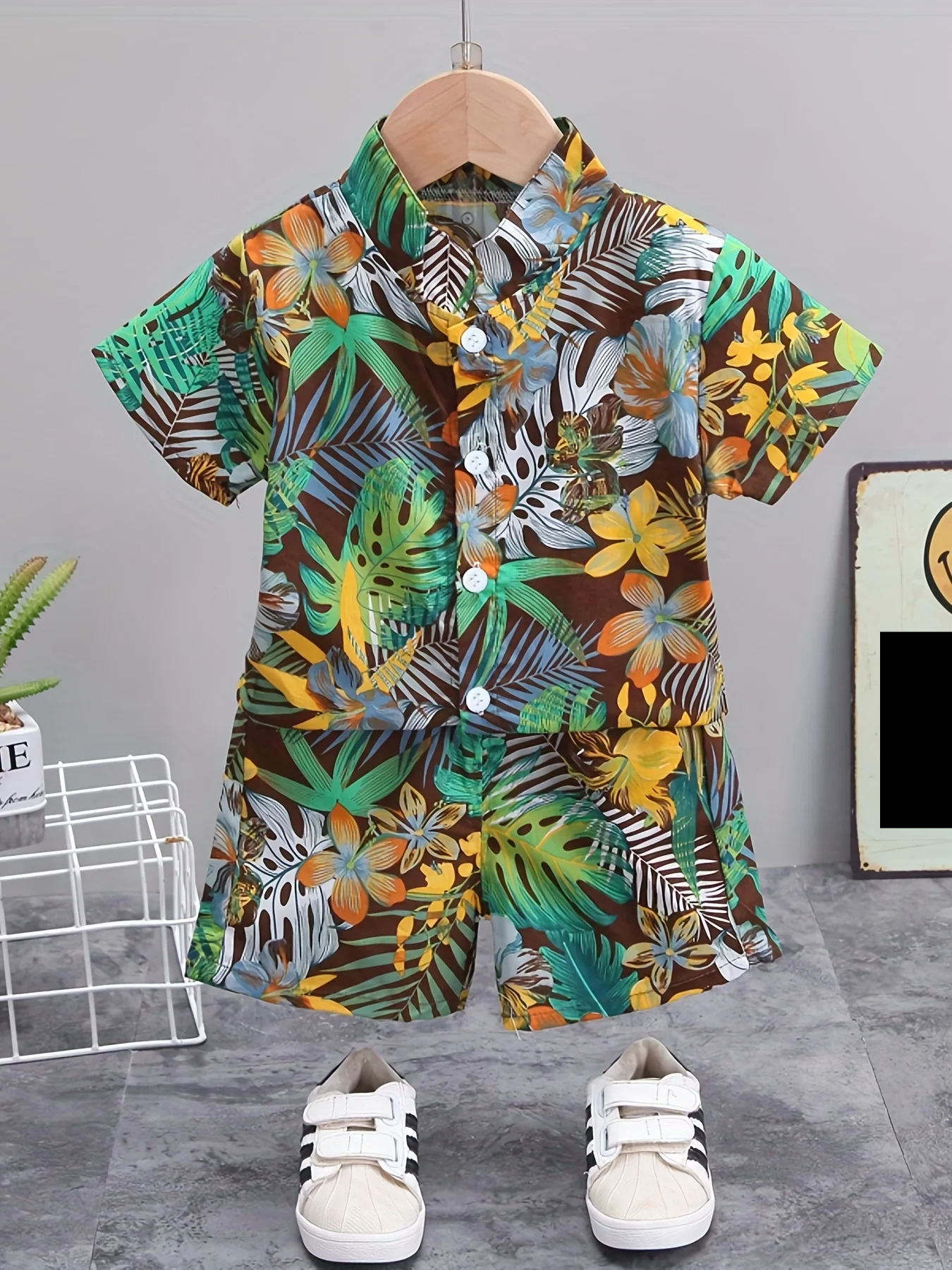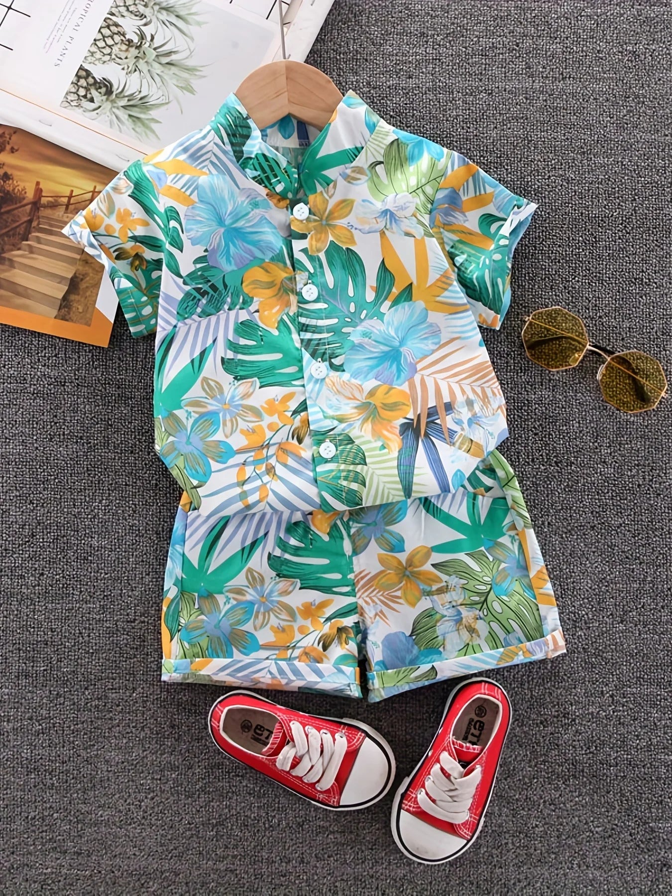 Summer Leaf & Flower Print Short Sleeve Set for Children
