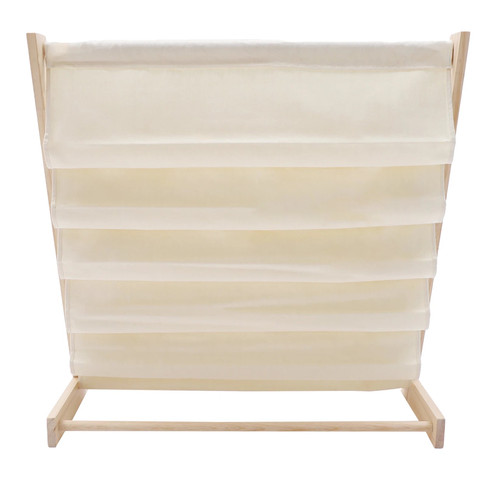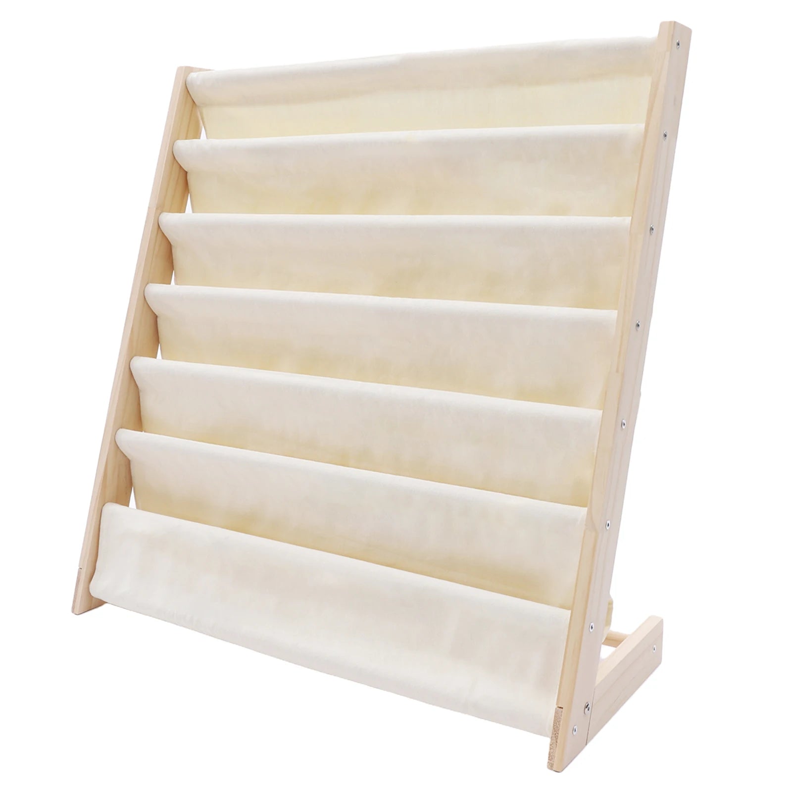 This 6-tier bookshelf combines natural pine wood with heavy-duty canvas, creating a durable yet lightweight storage solution. The sling-style design prevents bent pages and keeps books visible, sparking children’s curiosity and love for stories.