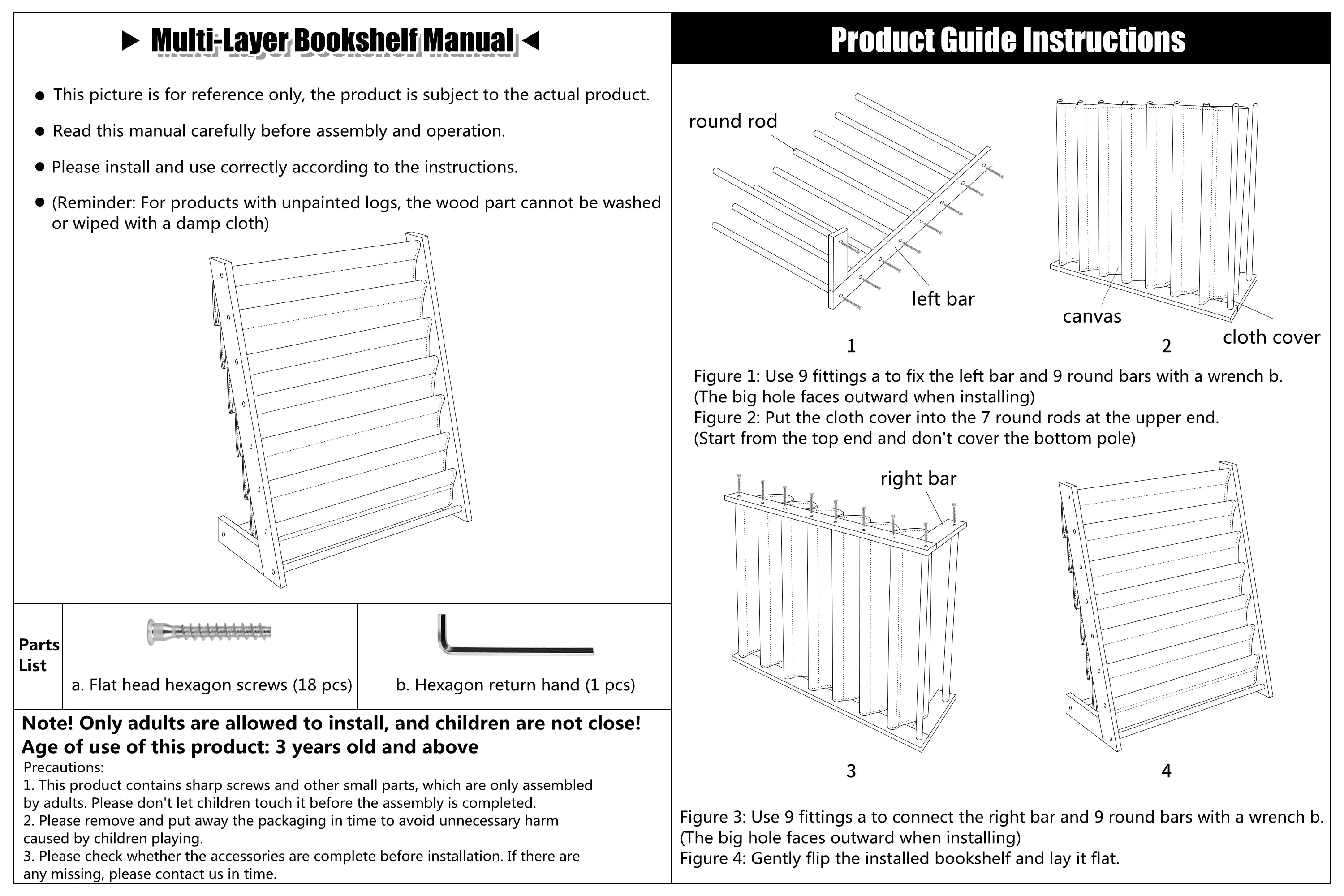 1x Wooden Kids Bookshelf (canvas + pine frame)