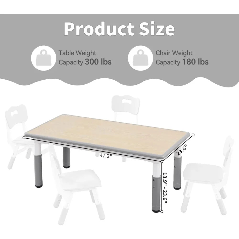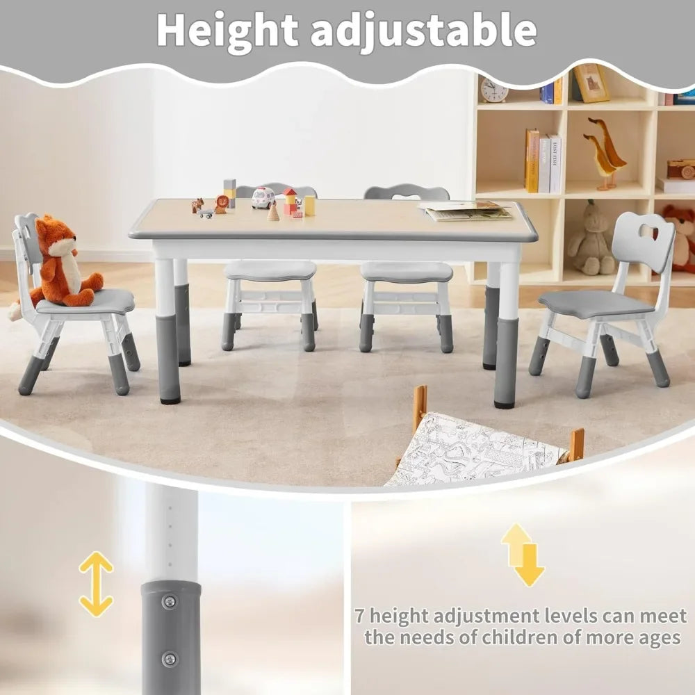 This kids table features 7 adjustable height levels ranging from 18.9" to 23.6", making it adaptable as your child grows. Whether for preschoolers or older children, the table accommodates different stages of development with ease and comfort.