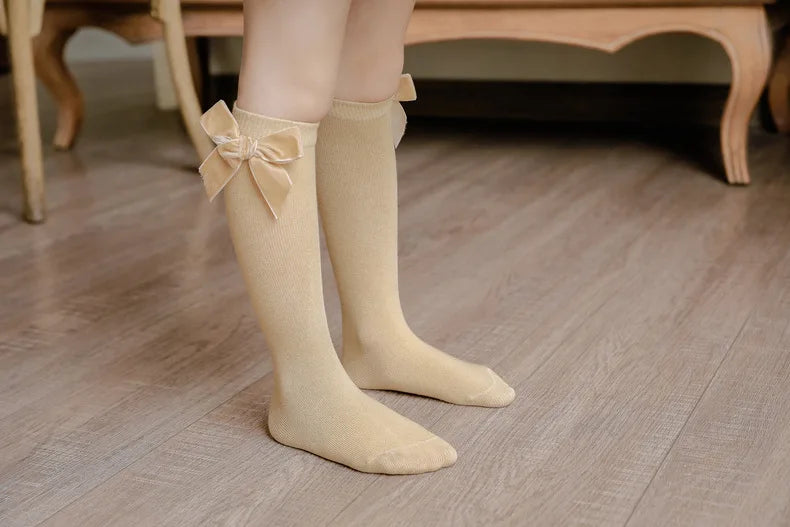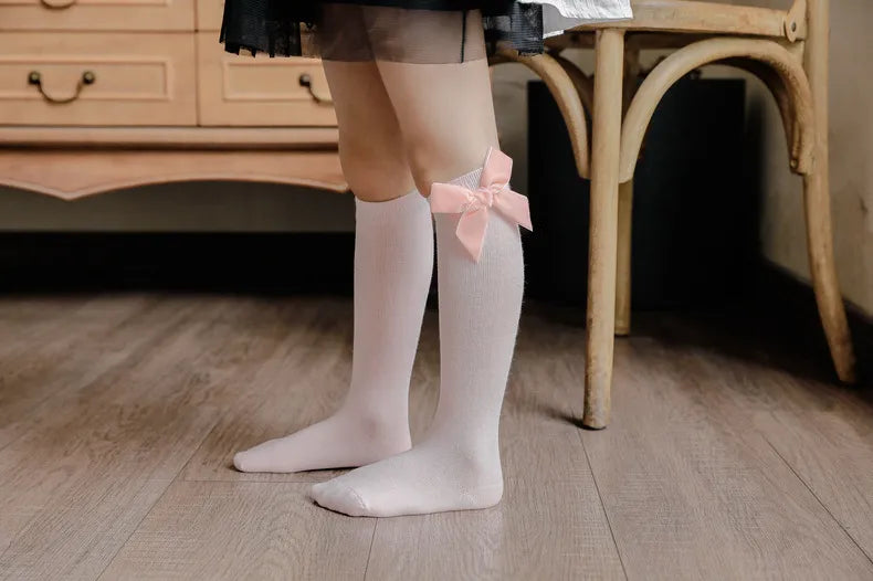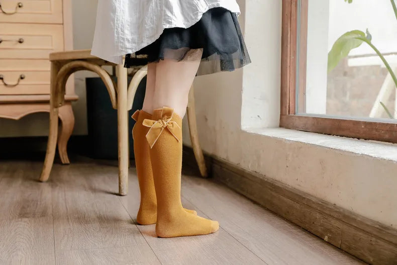 Elevate your little one's style with our charming Bow Knee High Socks. Crafted with a blend of soft cotton and polyester, these socks offer comfort and a touch of fashion for your precious girl.