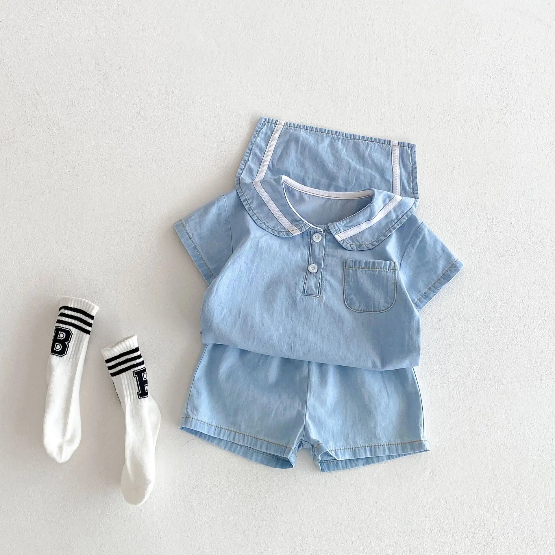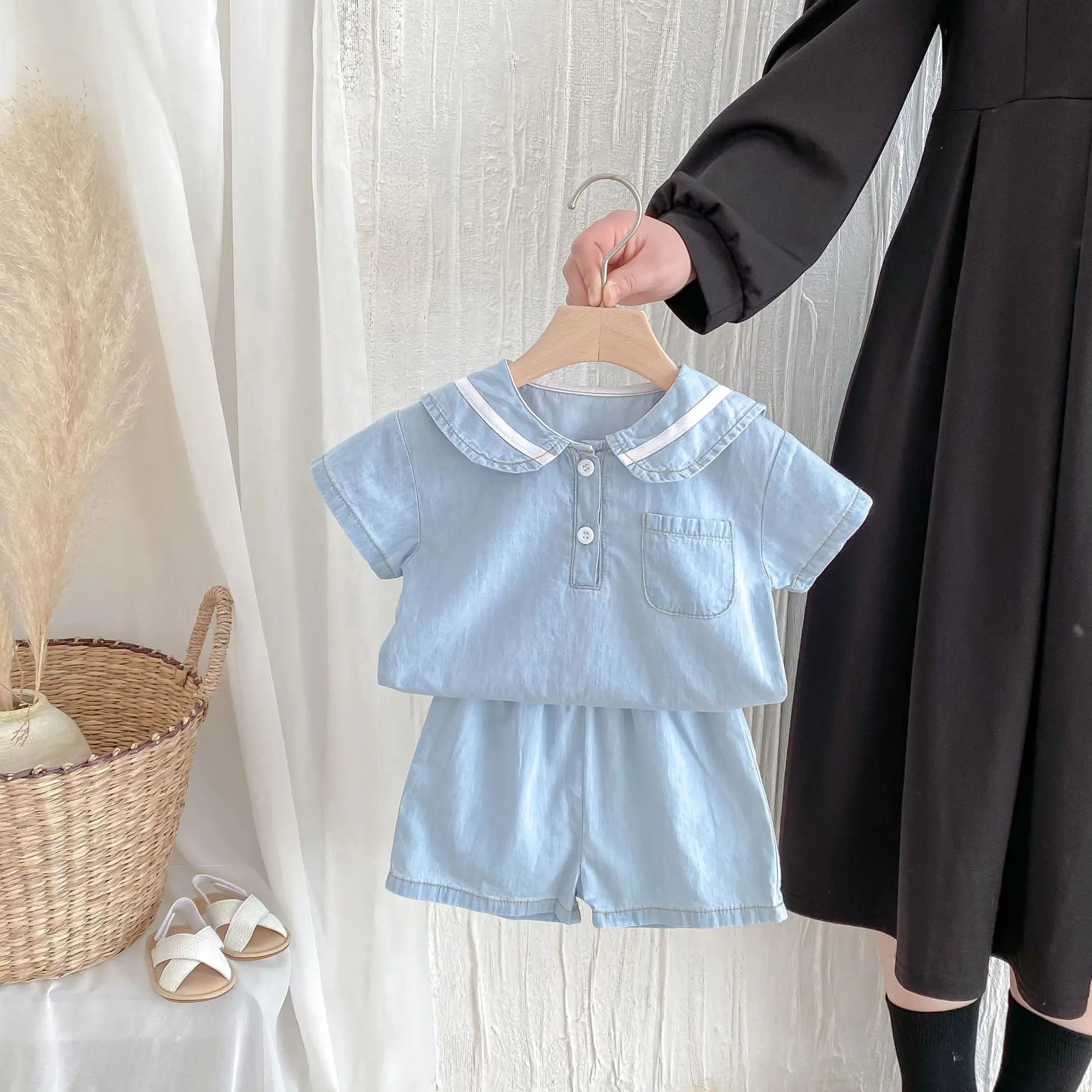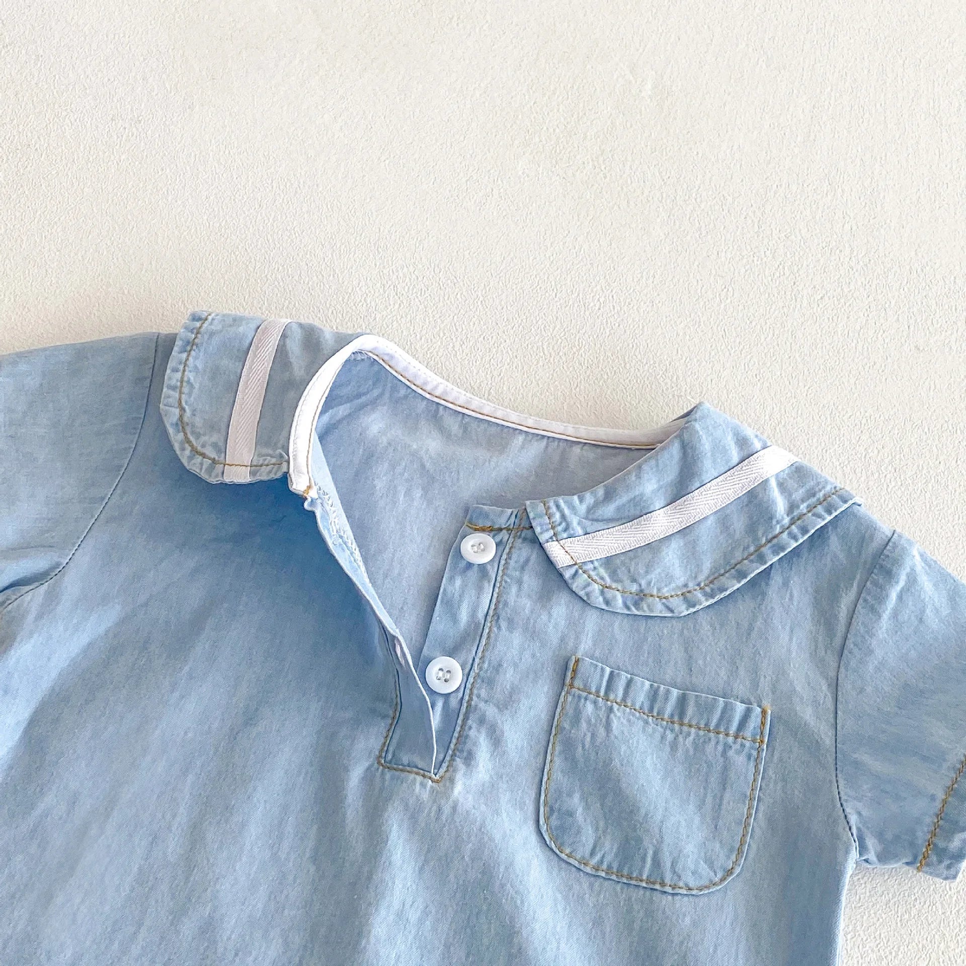 Dress your little one in cool and breathable style this summer! This adorable denim two-piece set includes a sailor-collared shirt and matching shorts—perfect for playdates, strolls, or any sunny-day fun. 🌞