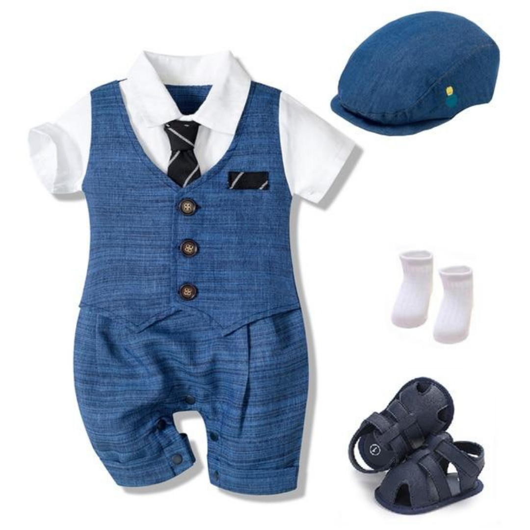 4 Pcs Blue Jumpsuit Vest Little Gentlemen Suit Set