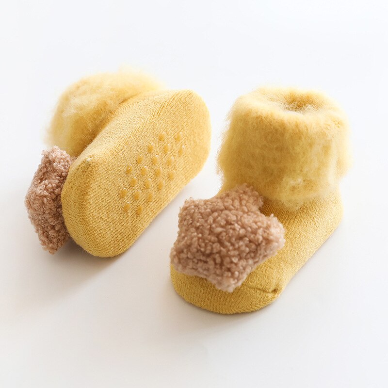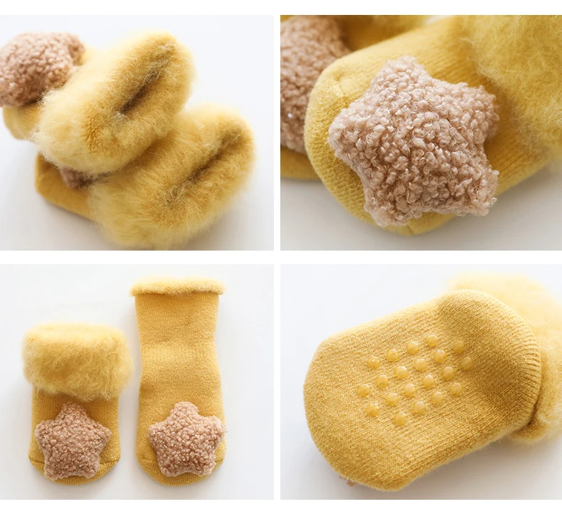 - The inner layer of the non-slip socks is made of cotton fabric, which is warm, soft, and comfortable. The outer layer of fur is very beautiful and adds charm to the baby's feet.