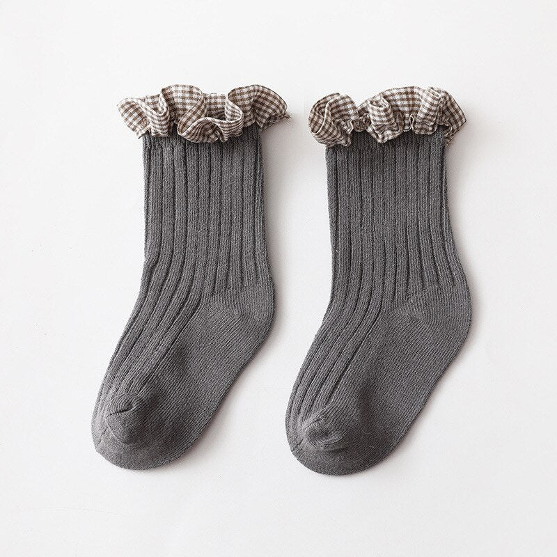 - The sock has a very cute checkered border design. Your baby will look extremely cute when paired with a skirt or sundress.