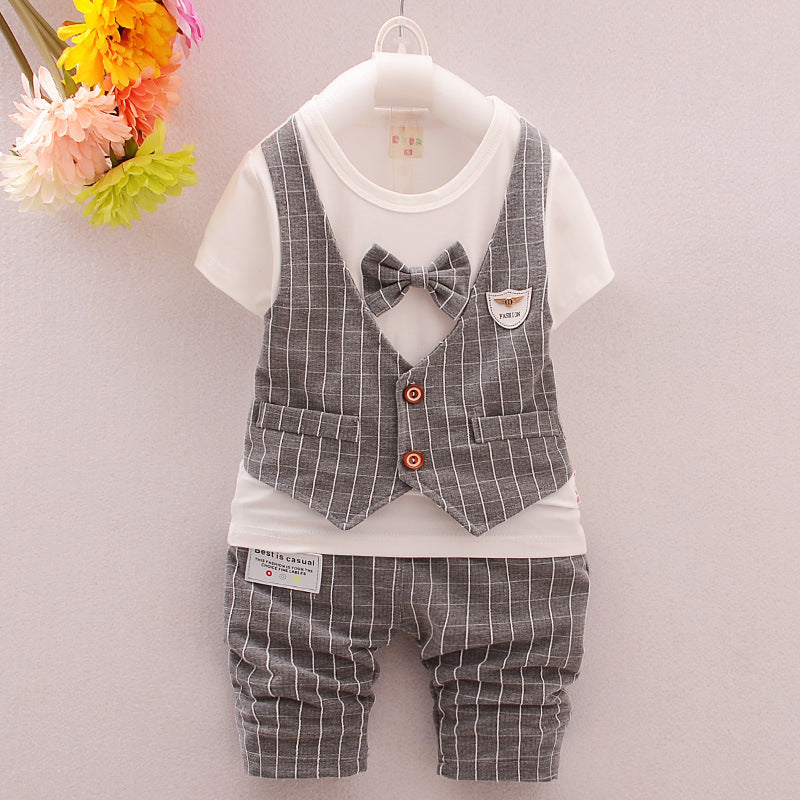 A handsome look is what your little boy would have with this formal-casual overalls clothing set. Make him stand out from the crowd! Bring out the cuteness of your baby boy a little more!