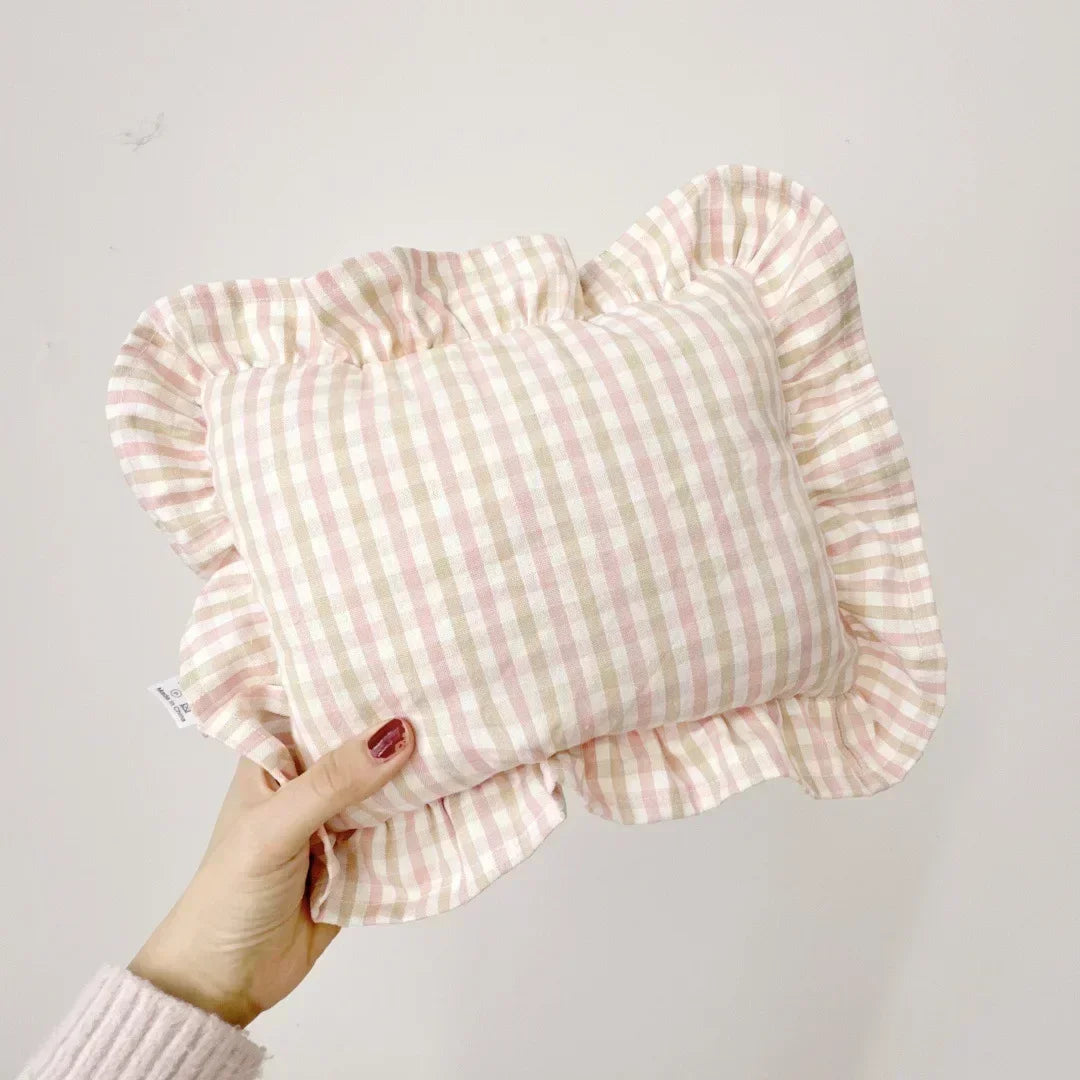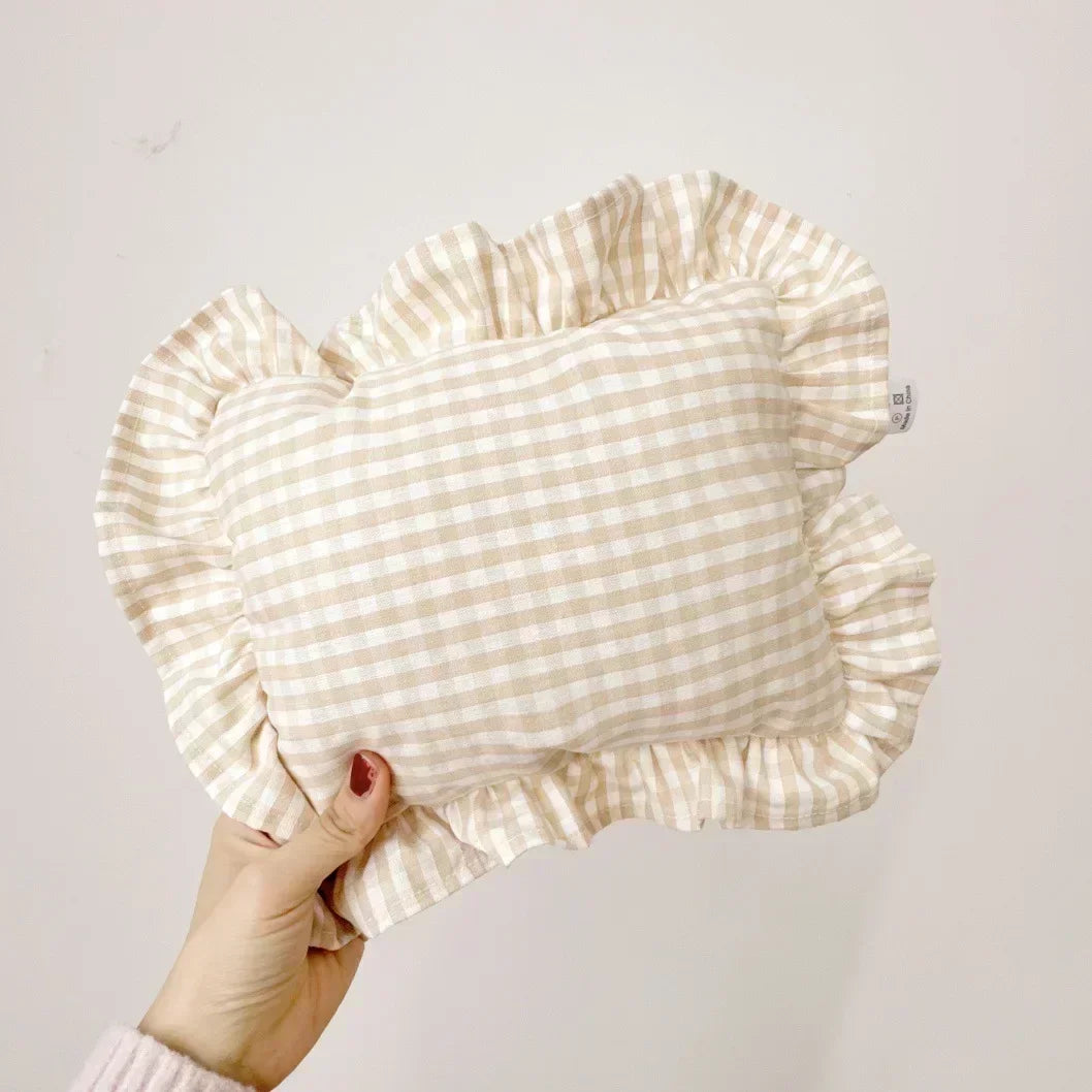 Custom Name Baby Pillow with Ruffles – 11"x13" Cotton Cushion for Newborns
