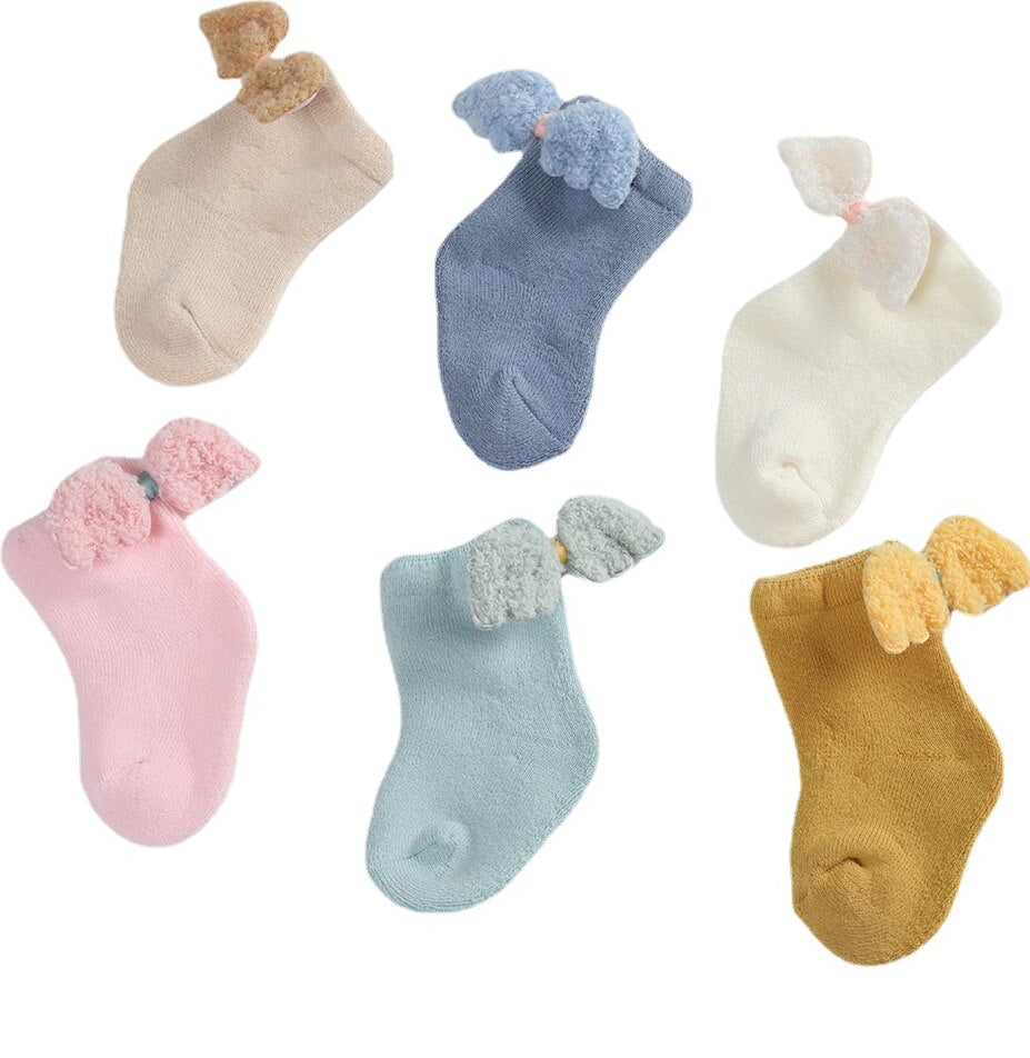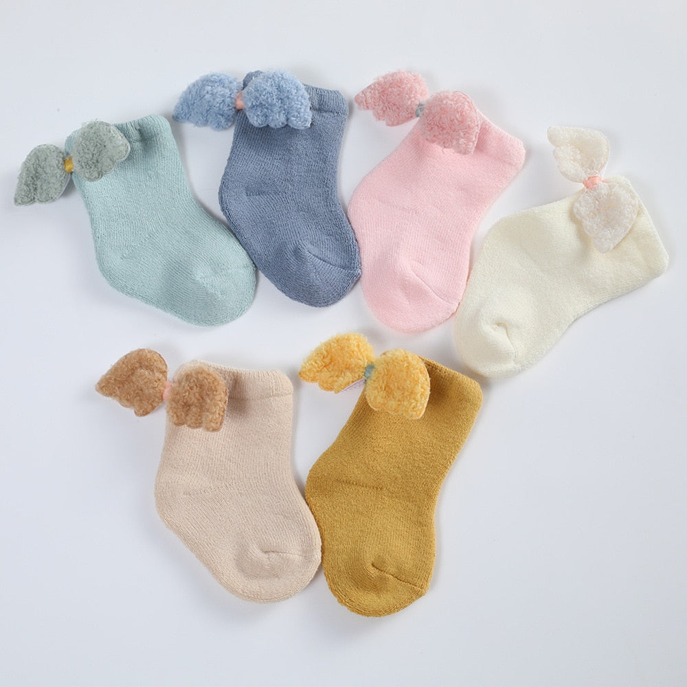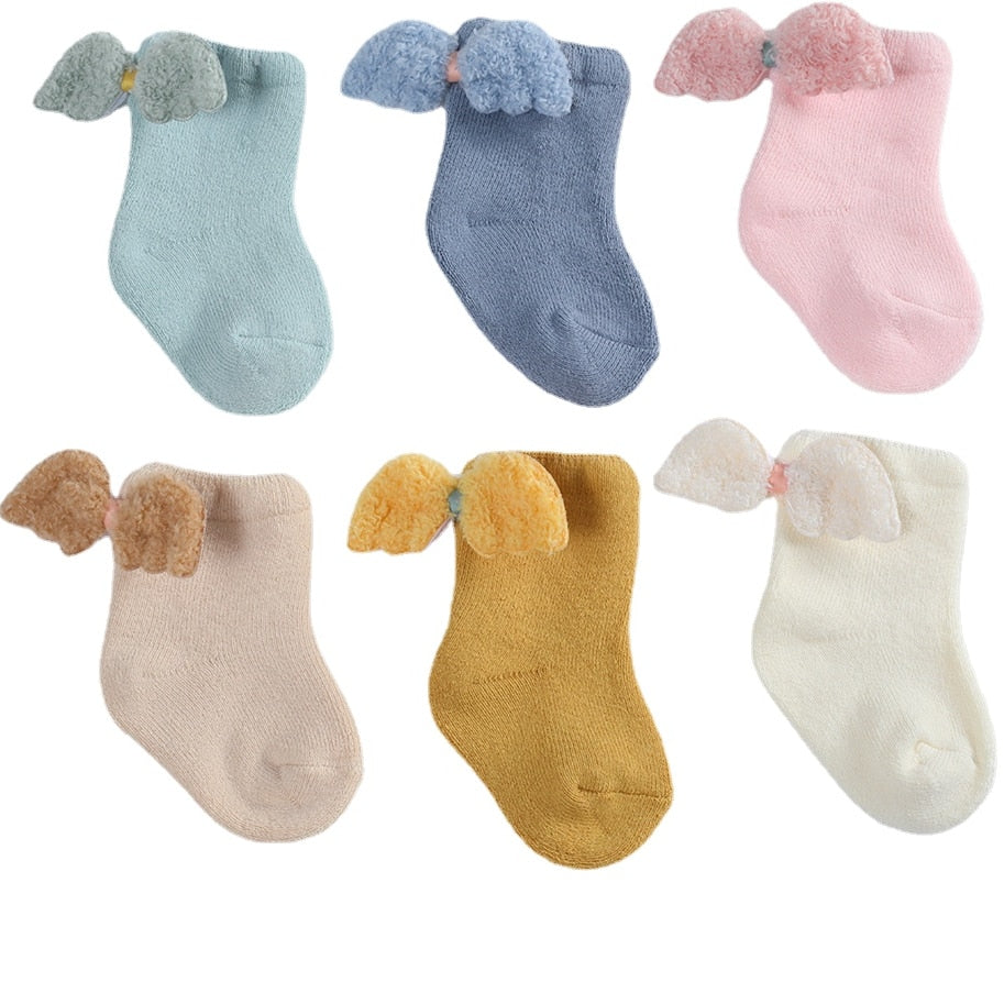 Whether it's winter or summer, socks are indispensable accessories for babies to keep warm and protect young feet. With the design of angel wings, add a touch of elegance to your baby.