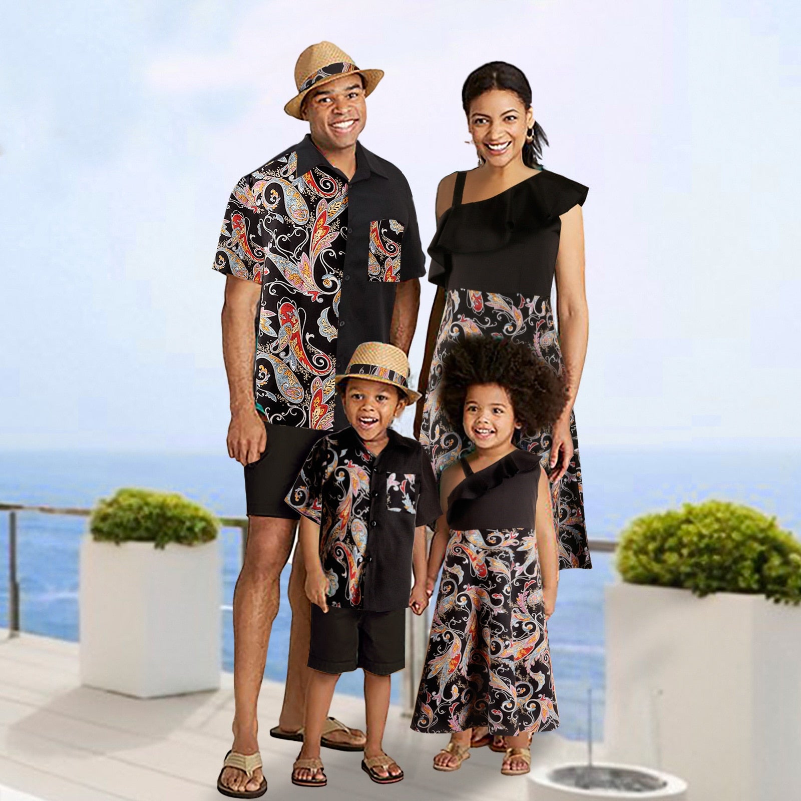 Set of clothes for every family in vacation travel occasions. With unique and fancy textures along with modern and trendy designs. The main color is mysterious black that will create a highlight for the wearer.
