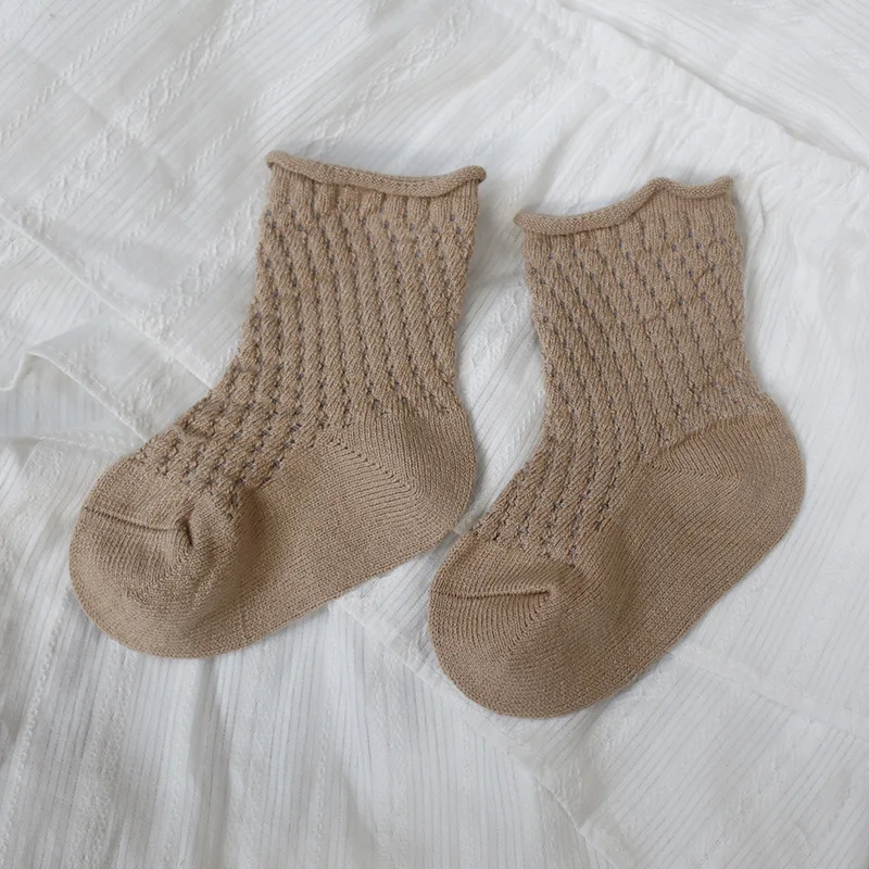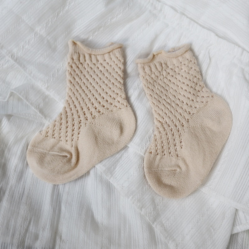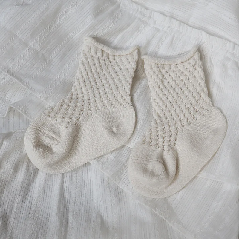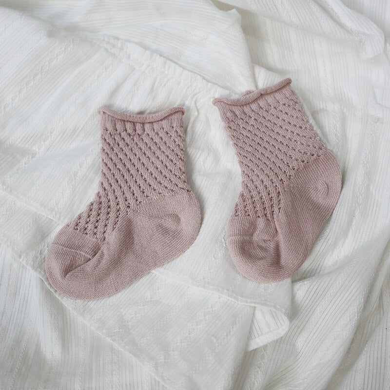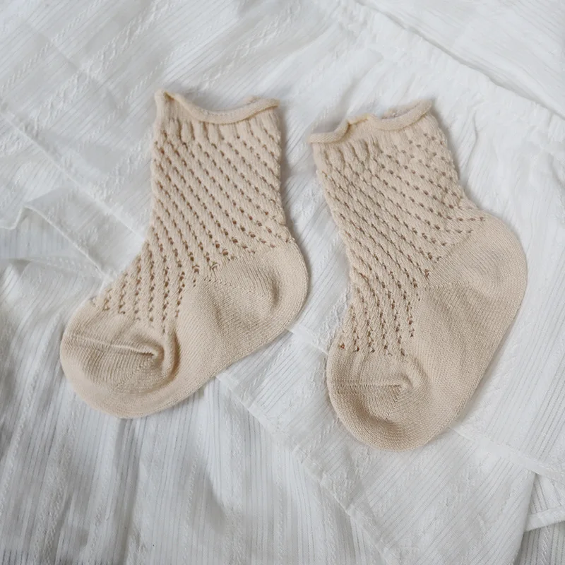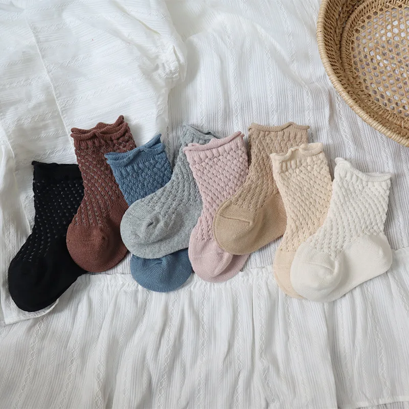 Soft cotton fabric with mesh weave. Various models, cute, lovely. Good elastic socks with many ventilation holes can go all 4 seasons, not sweat feet. Many colors for moms to choose from for their babies.