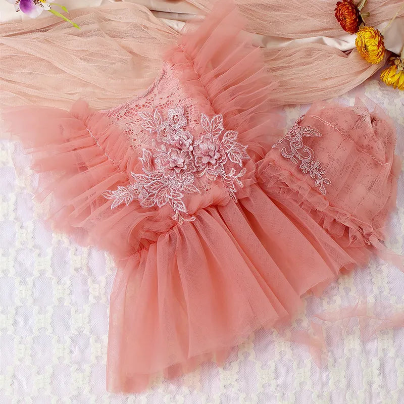 Designed for both special occasions and everyday wear, our Lace Floral Mesh Romper Set strikes the perfect balance between fashion and functionality. The intricate lace detailing adds a touch of sophistication, making your little one stand out with elegance.