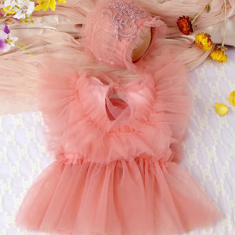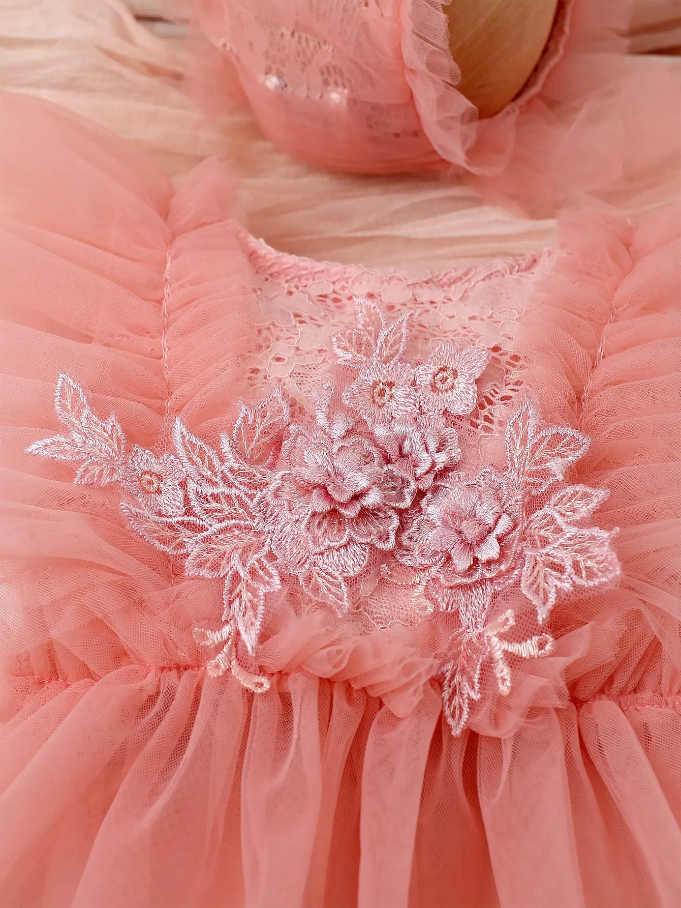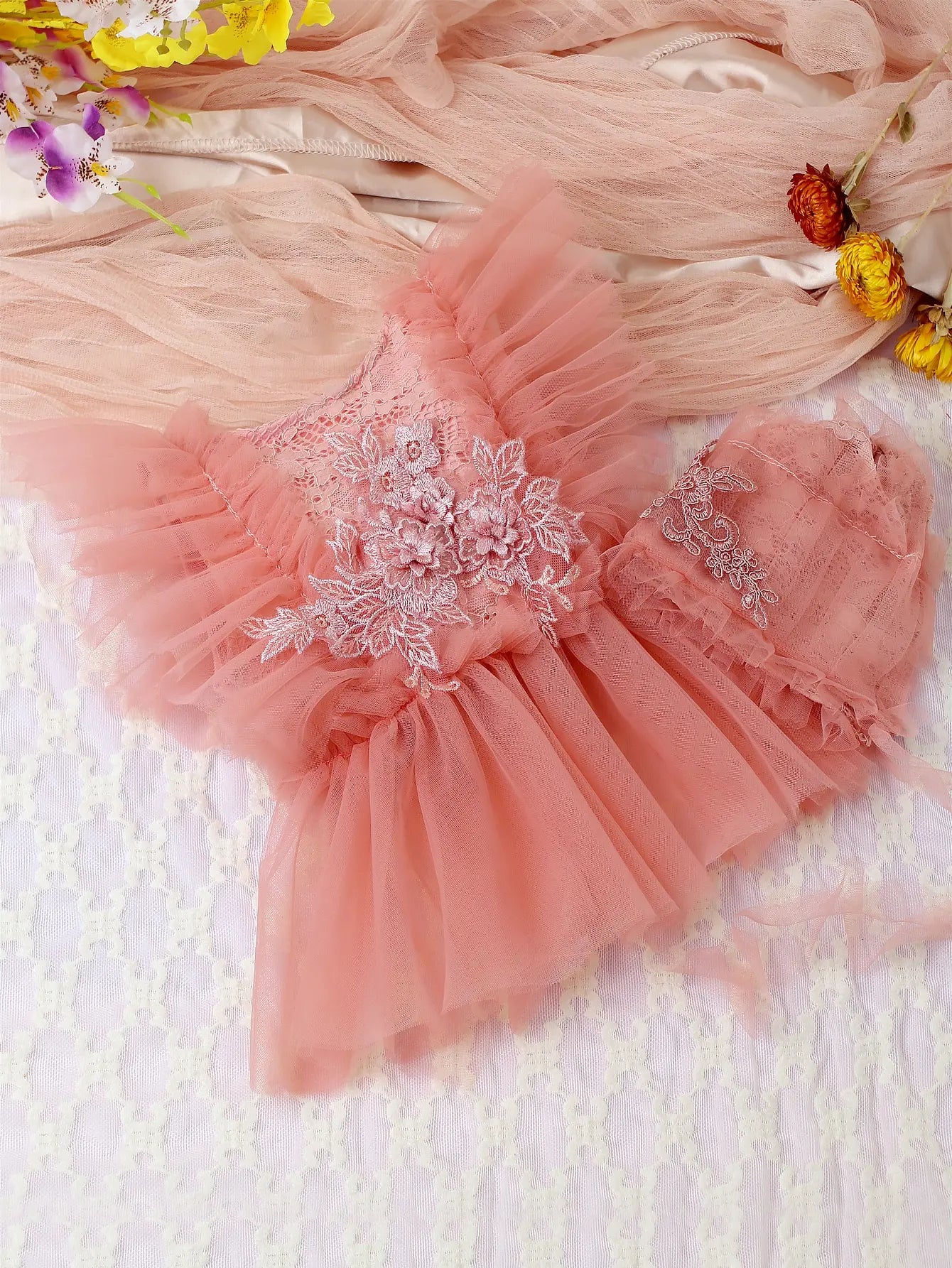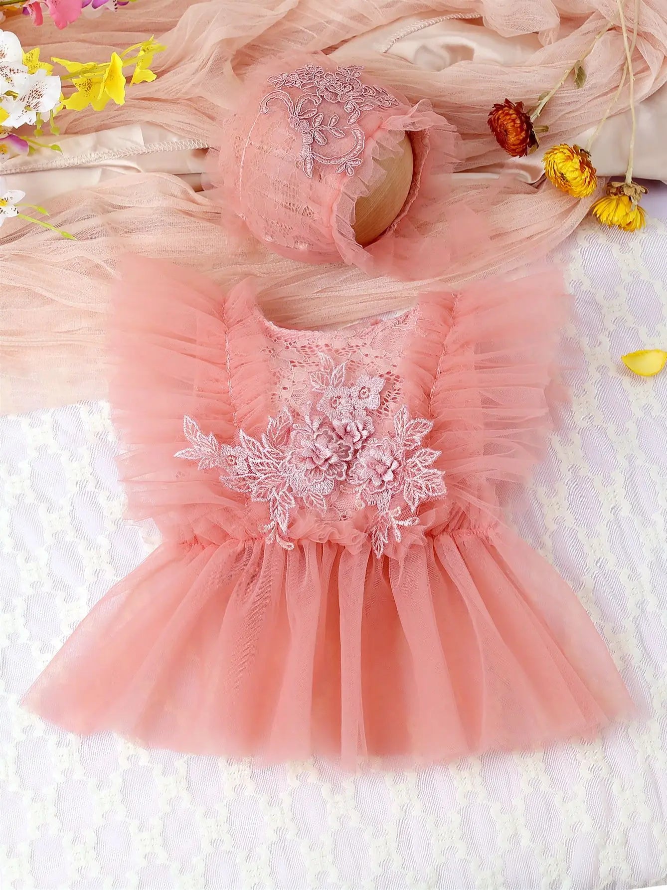 Elevate Your Baby's Style with Our Lace Floral Mesh Romper Set!