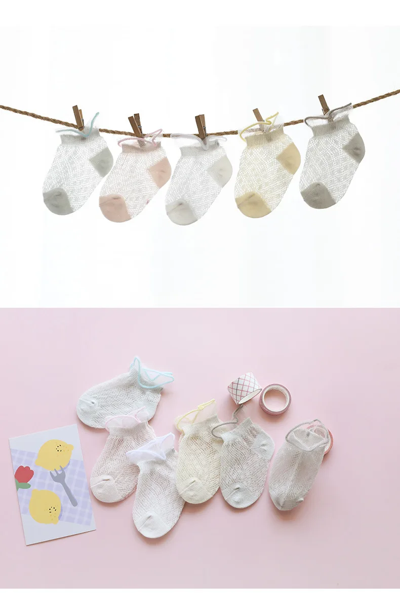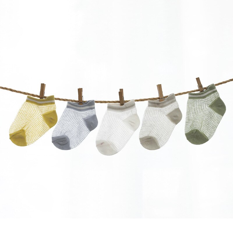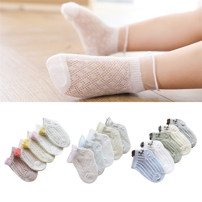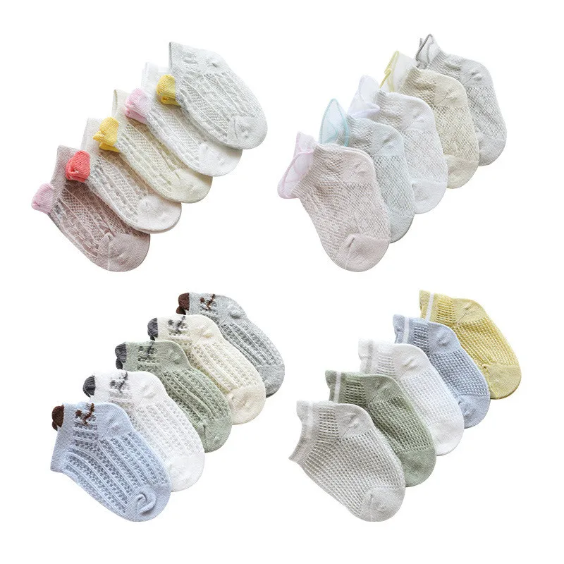 Soft cotton material with a mesh weave ensures that the child does not get sweaty, so it is especially suitable for newborns to carry when sleeping, to avoid cold feet, or to carry when wearing shoes. 1 set includes 5 pairs for the mom to choose from freely.