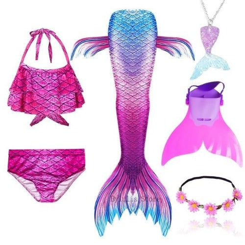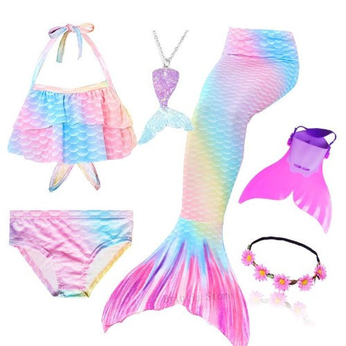 Your precious little girl will feel like a real mermaid the moment she wears this Mermaid Costume Set. She can lounge at the beach taking pictures or she can swim with real fins like a mermaid. This complete set with a flipper will surely make her mermaid dreams come true.