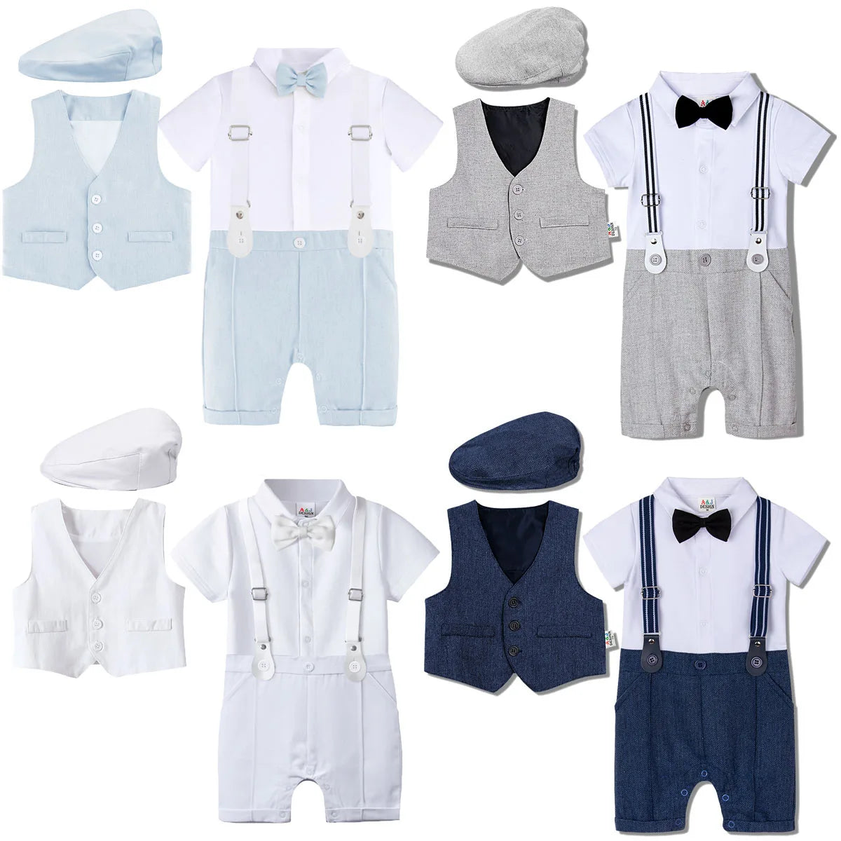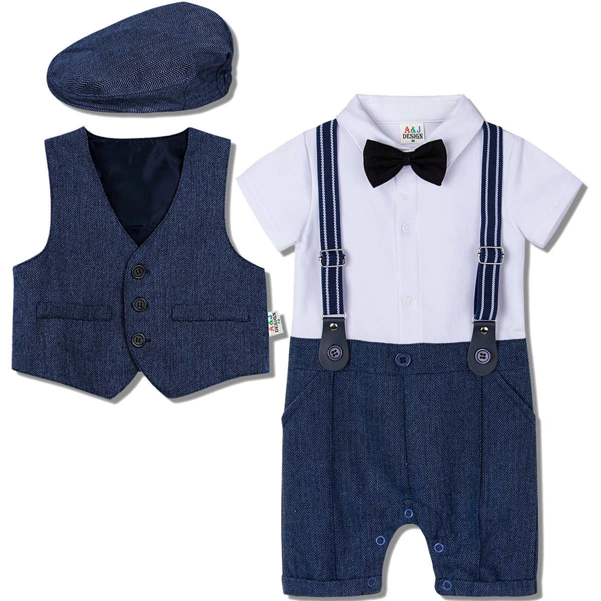 Newborn Boys Clothing Set - Baby Christening Romper Outfit |