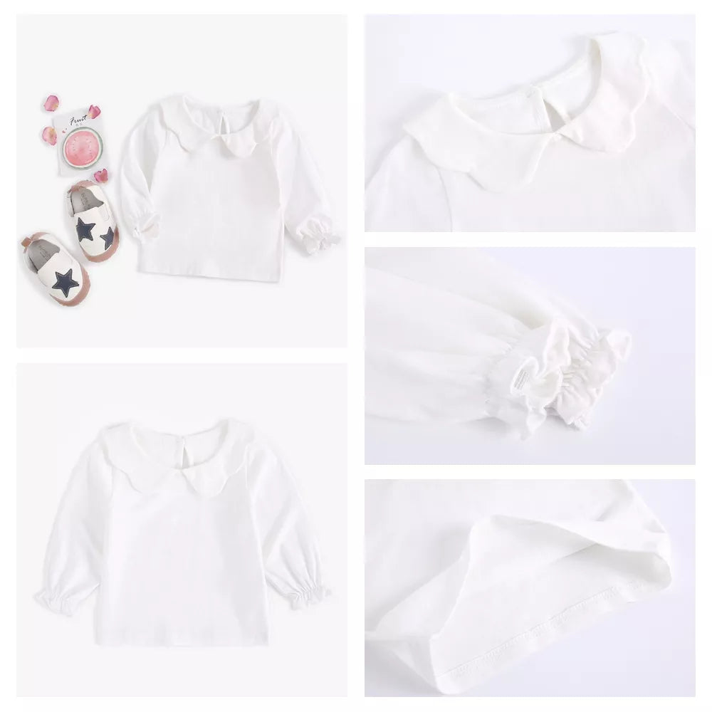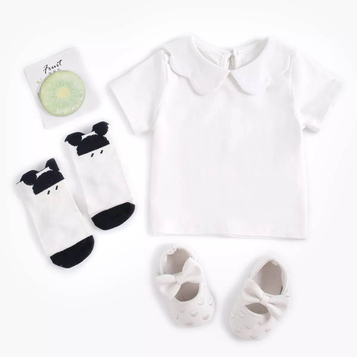 Cute Patterns for Added Charm: The tops are adorned with cute patterns that add an extra layer of charm to your baby girl's outfit. The combination of white fabric and adorable designs creates a look that is both fashionable and sweet.
