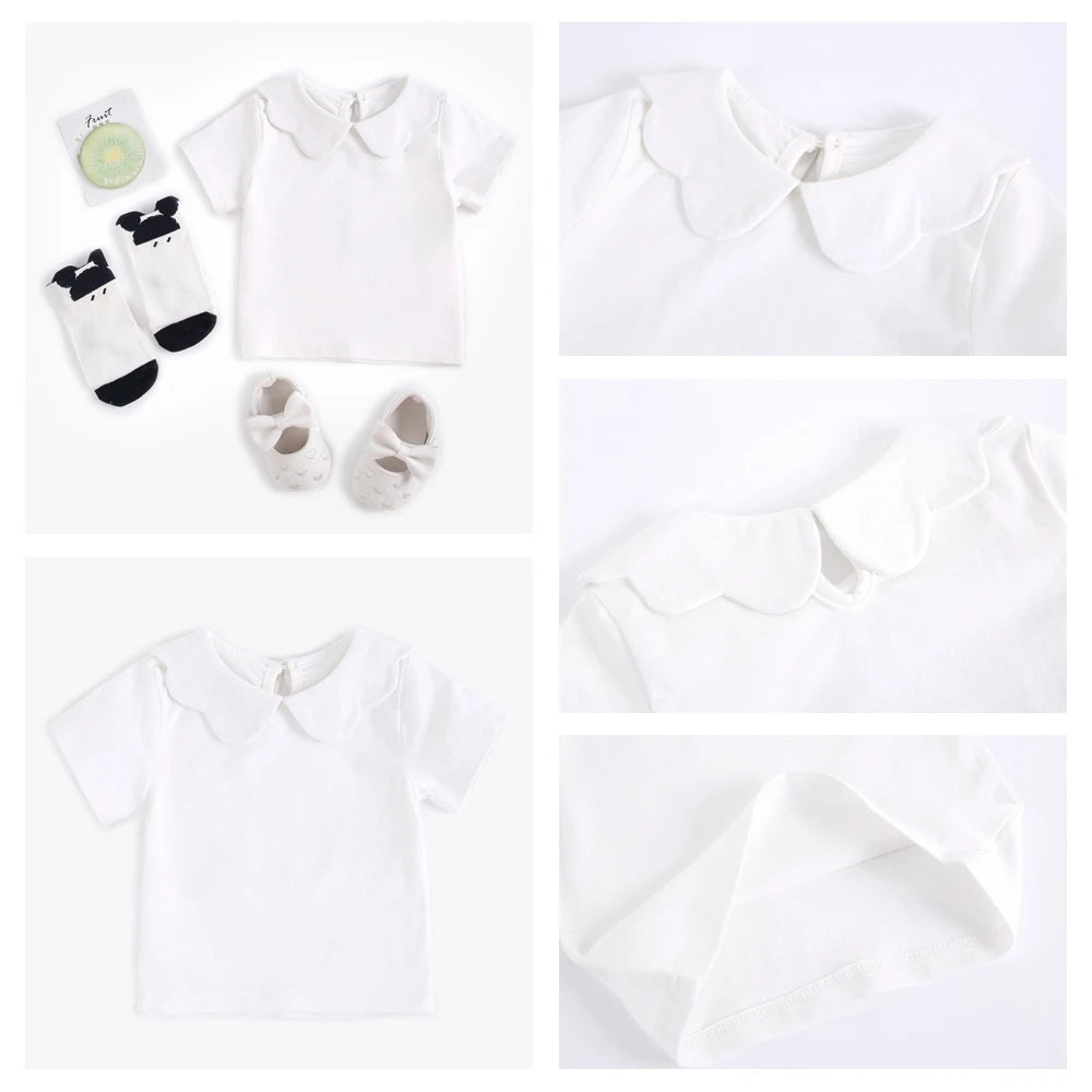 Age-Appropriate Design: Tailored for newborns up to 3 years, these tops feature a classic O-neck collar and short sleeves, adding a timeless and age-appropriate element to your baby girl's wardrobe.