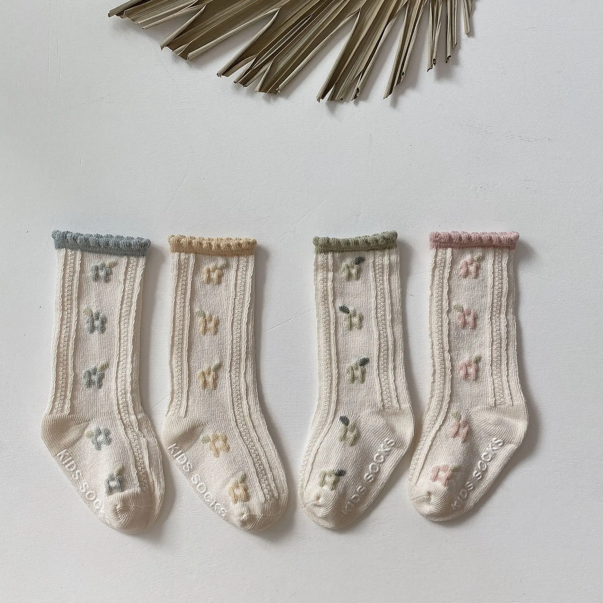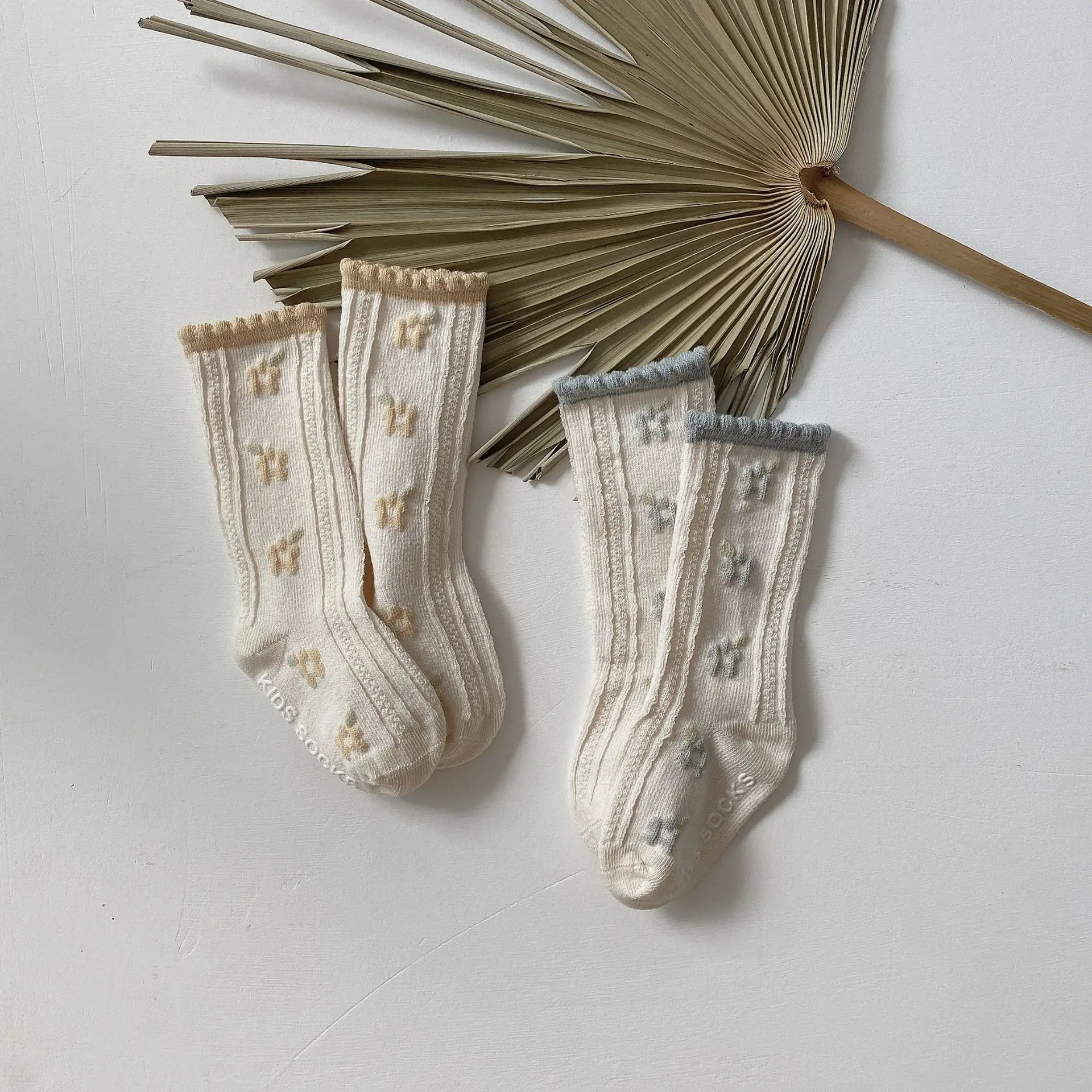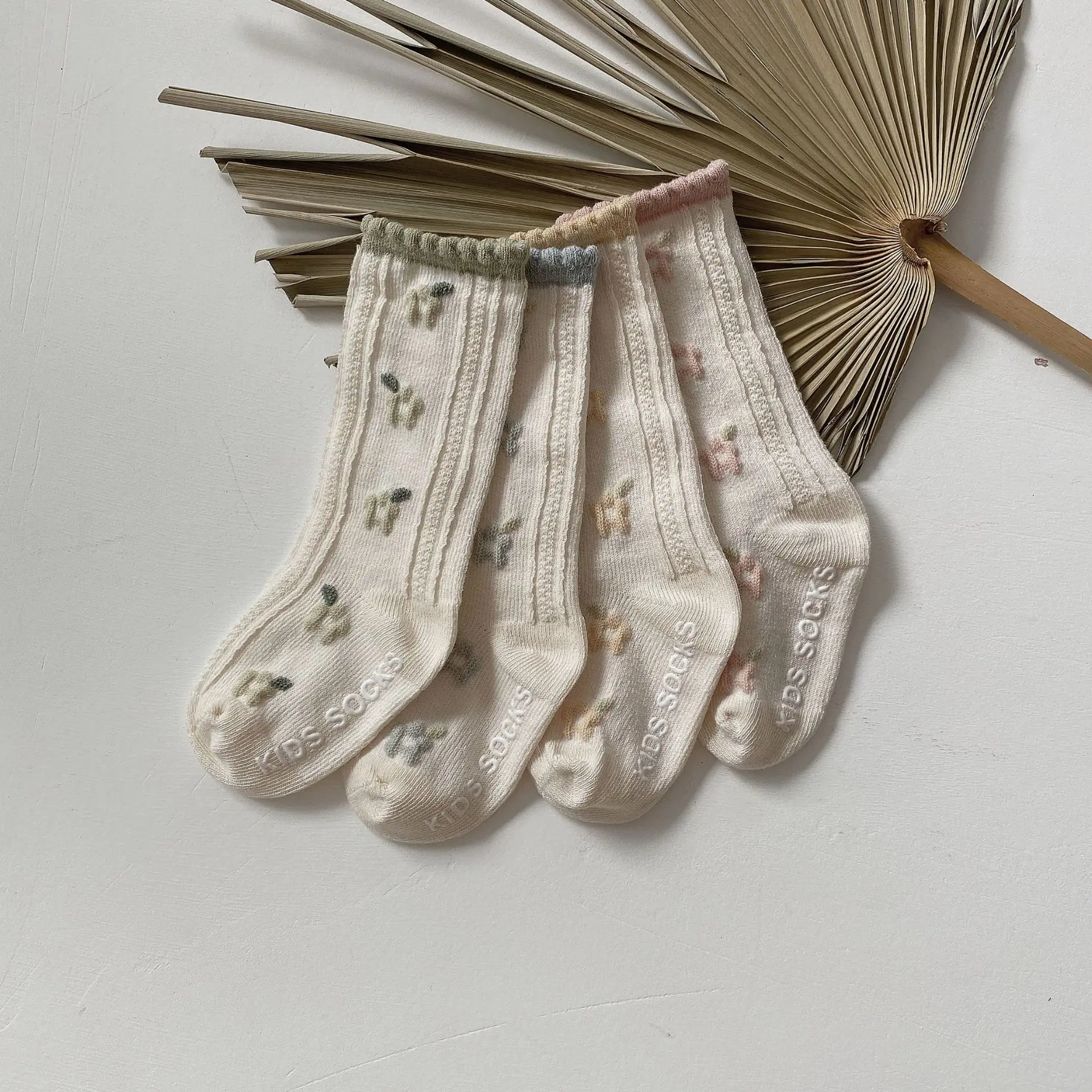 High socks with elastic edges, prevent wind from entering, help keep warm without imprinting causing discomfort for babies, and firmly hug the legs, avoiding slipping when exercising. and run and jump. The heel and toe of the socks are rounded, hugging the baby's feet but still elastically comfortable to create maximum comfort for the baby's activities. 1 Set includes 4 pairs with different colors.