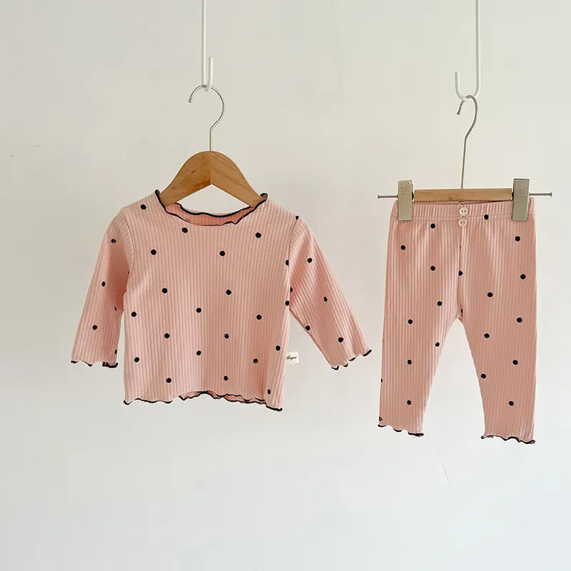 Introducing Our Adorable Spring Baby Dot Print Sleeper Set - Perfect Indoor Comfort for Your Little Princess!