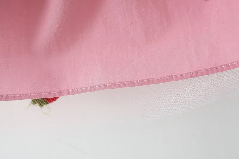 Strawberry Embroidery: Adorned with delightful strawberry embroidery, this dress brings a playful and cheerful vibe, adding an extra layer of cuteness.