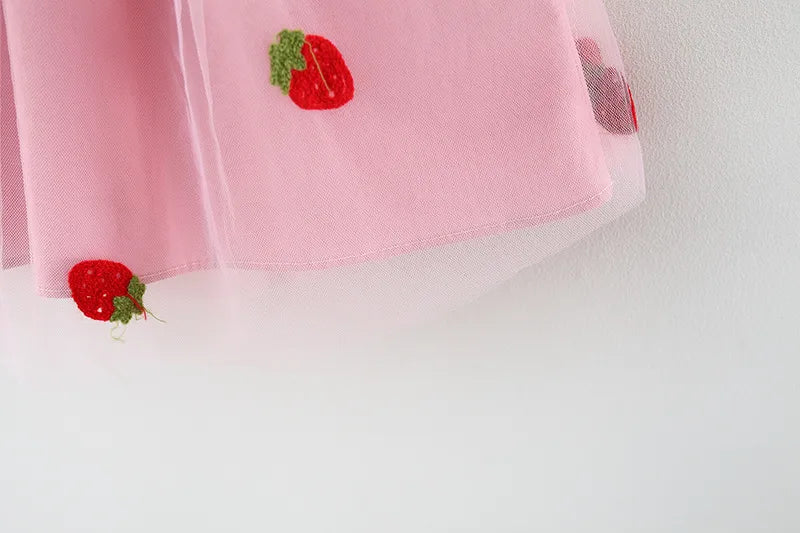 Summer Princess Dress: Strawberry Embroidery & Bow Details