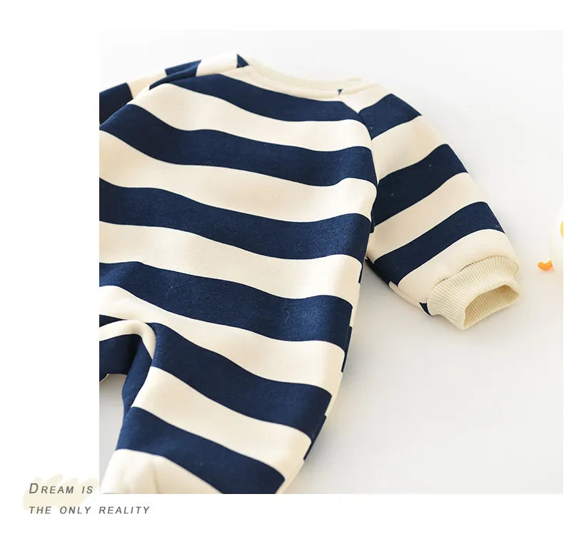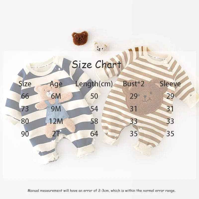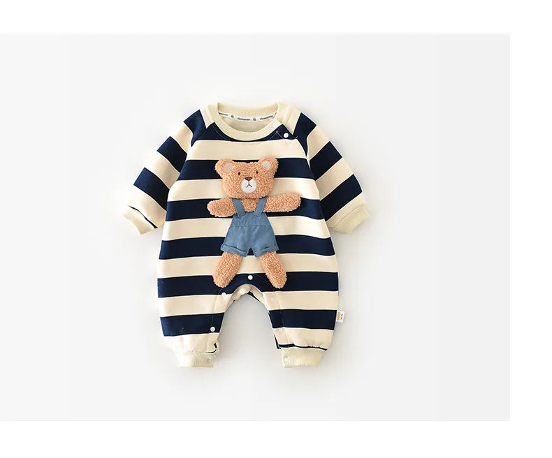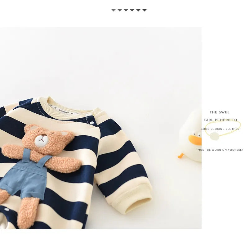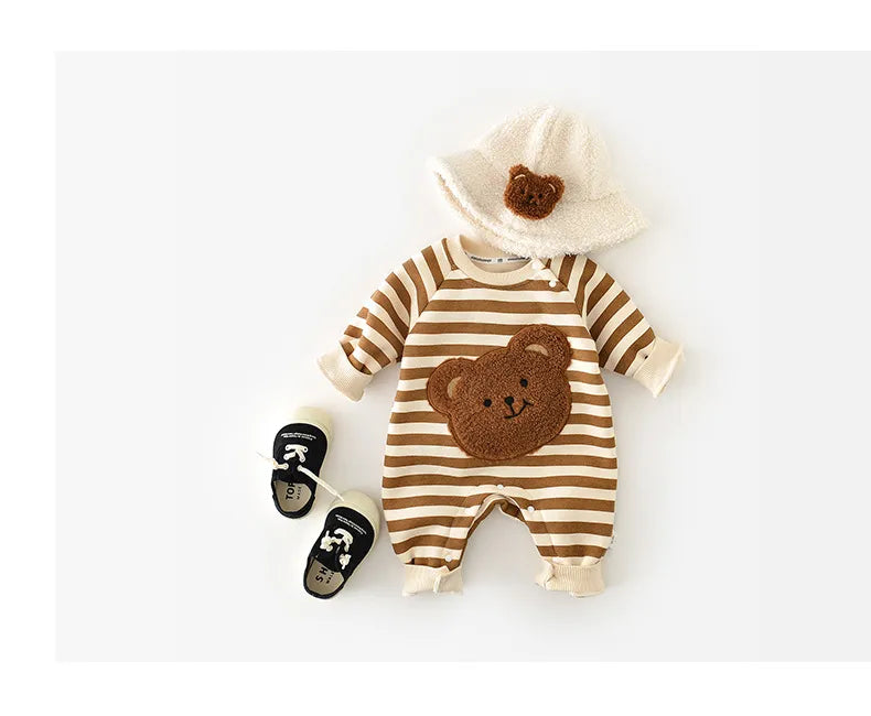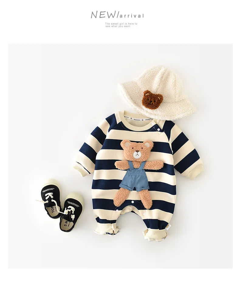 Dress Your Baby in Style and Comfort! Don't miss the chance to dress your little one in our Thick Lining Baby Rompers - Striped Bear Outfit. Make every moment cozy and stylish. Order now!