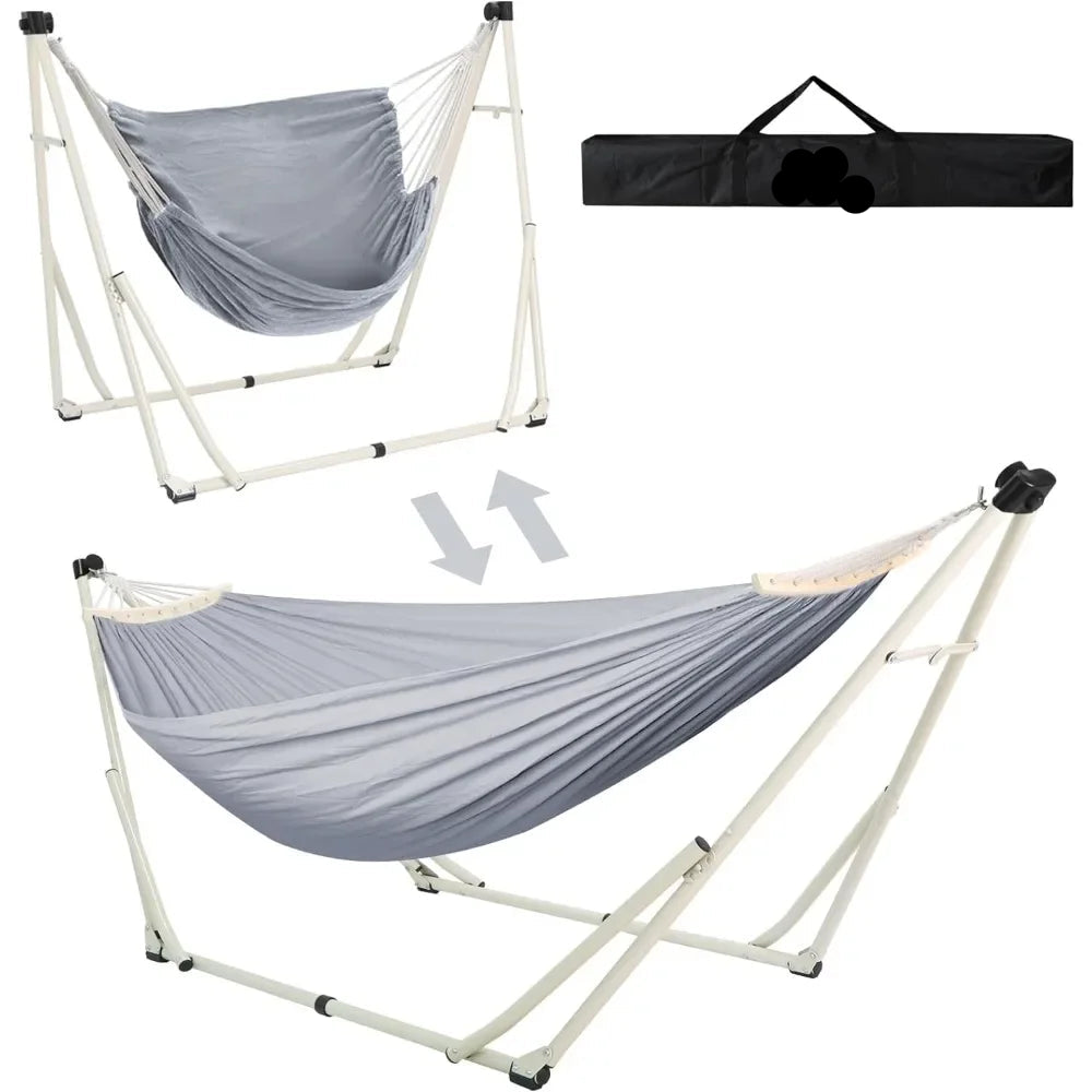 2-in-1 Portable Hammock & Swing Chair with Foldable Steel Stand and Carrying Case – Adjustable, Easy to Set Up for Kids & Adults, Indoor & Outdoor Use