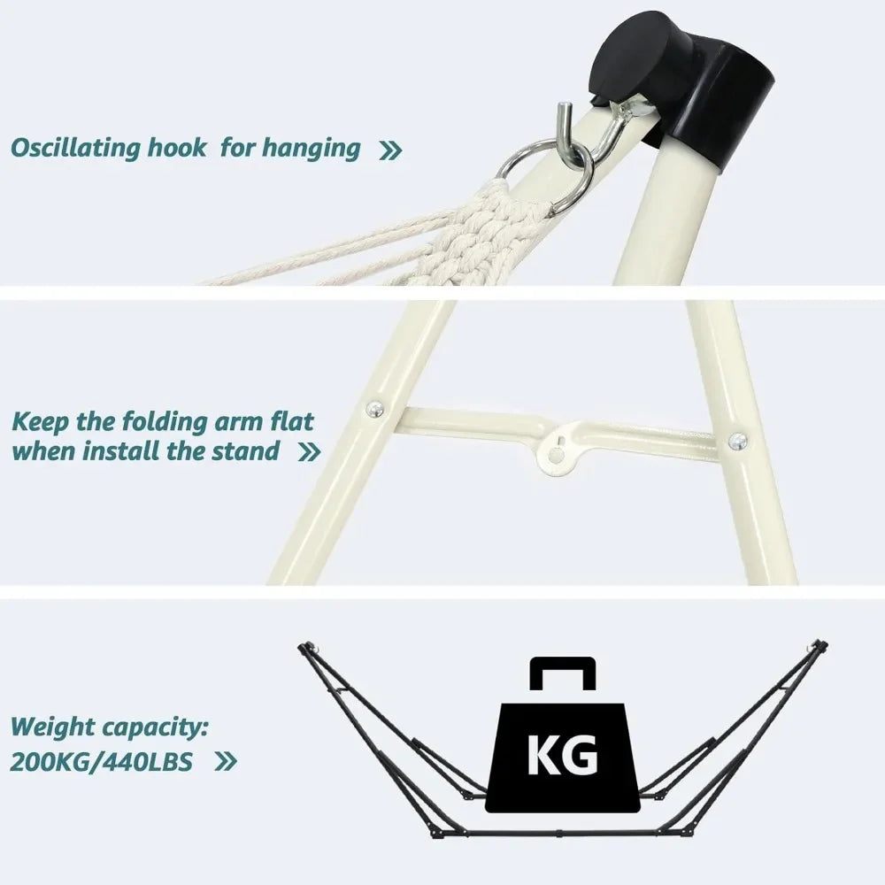 No need for drills or measuring distances. This hammock stand features a quick screw-and-hook design that makes assembly fast and effortless. Perfect for busy parents and families on the go, it disassembles just as easily for compact storage.