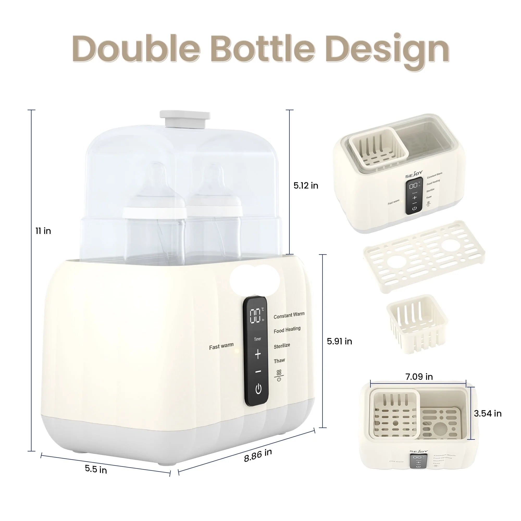 🍼 Double Bottle Capacity + Food Warming Tray
