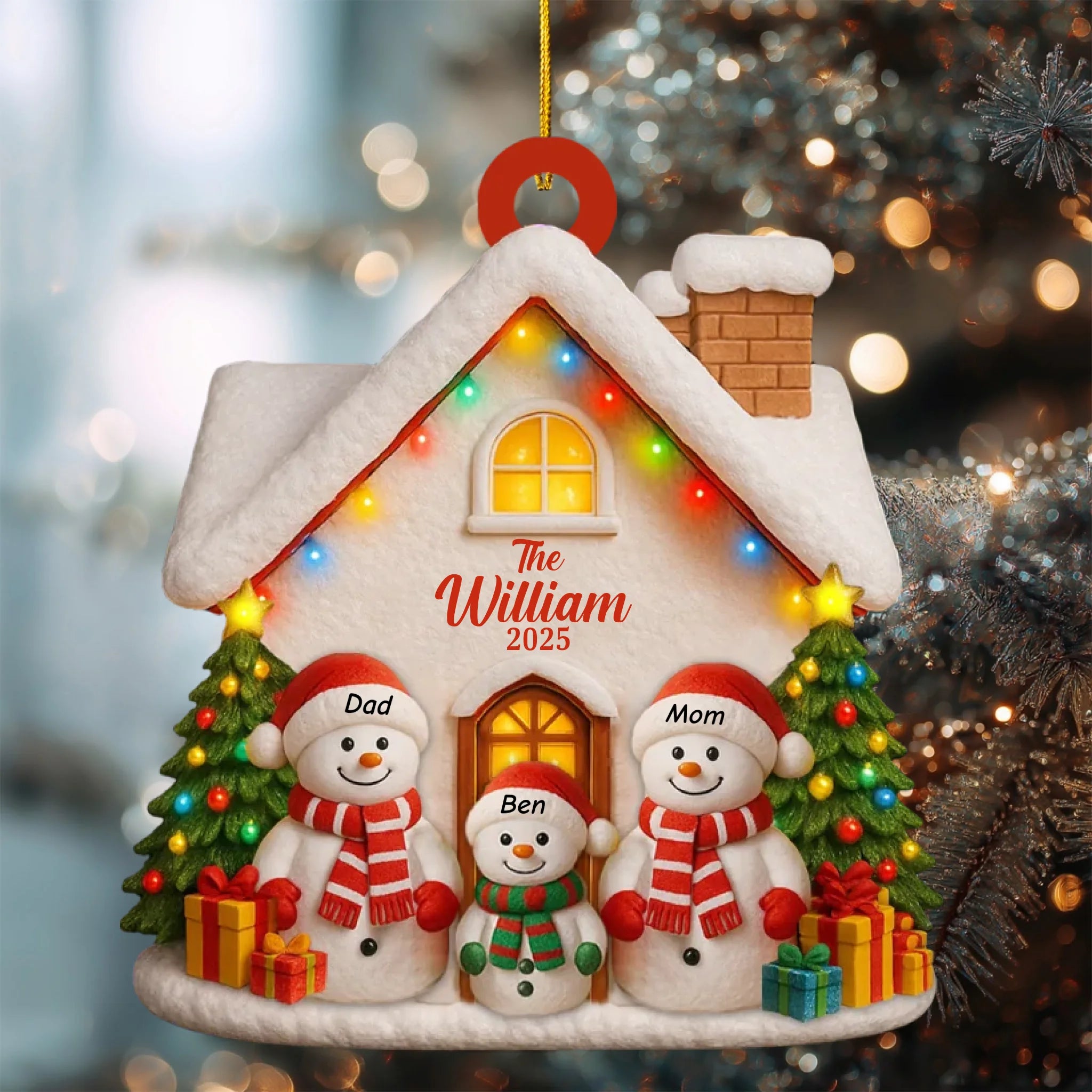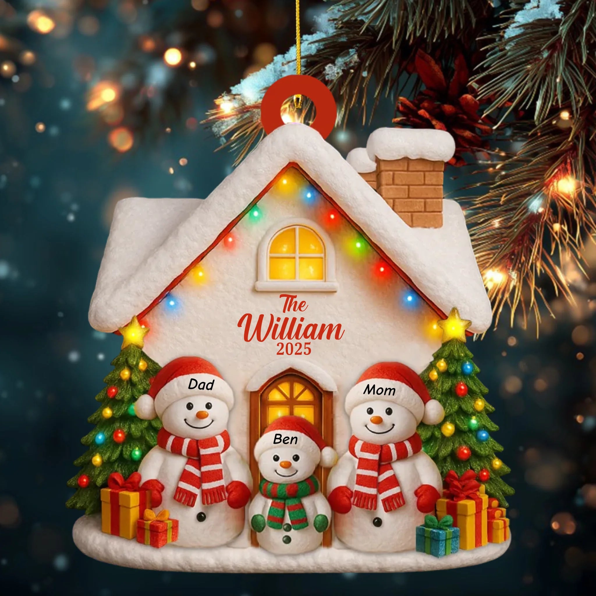 Featuring adorable snowmen representing parents and children, this charming design brings a cozy and festive spirit to your home.