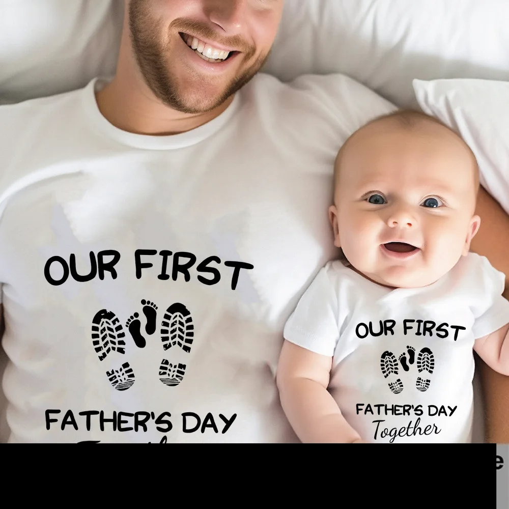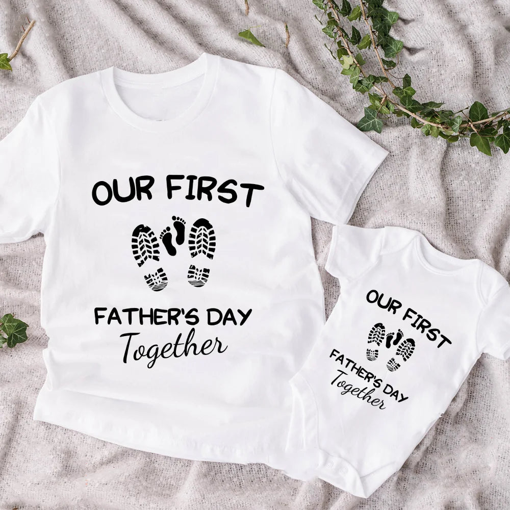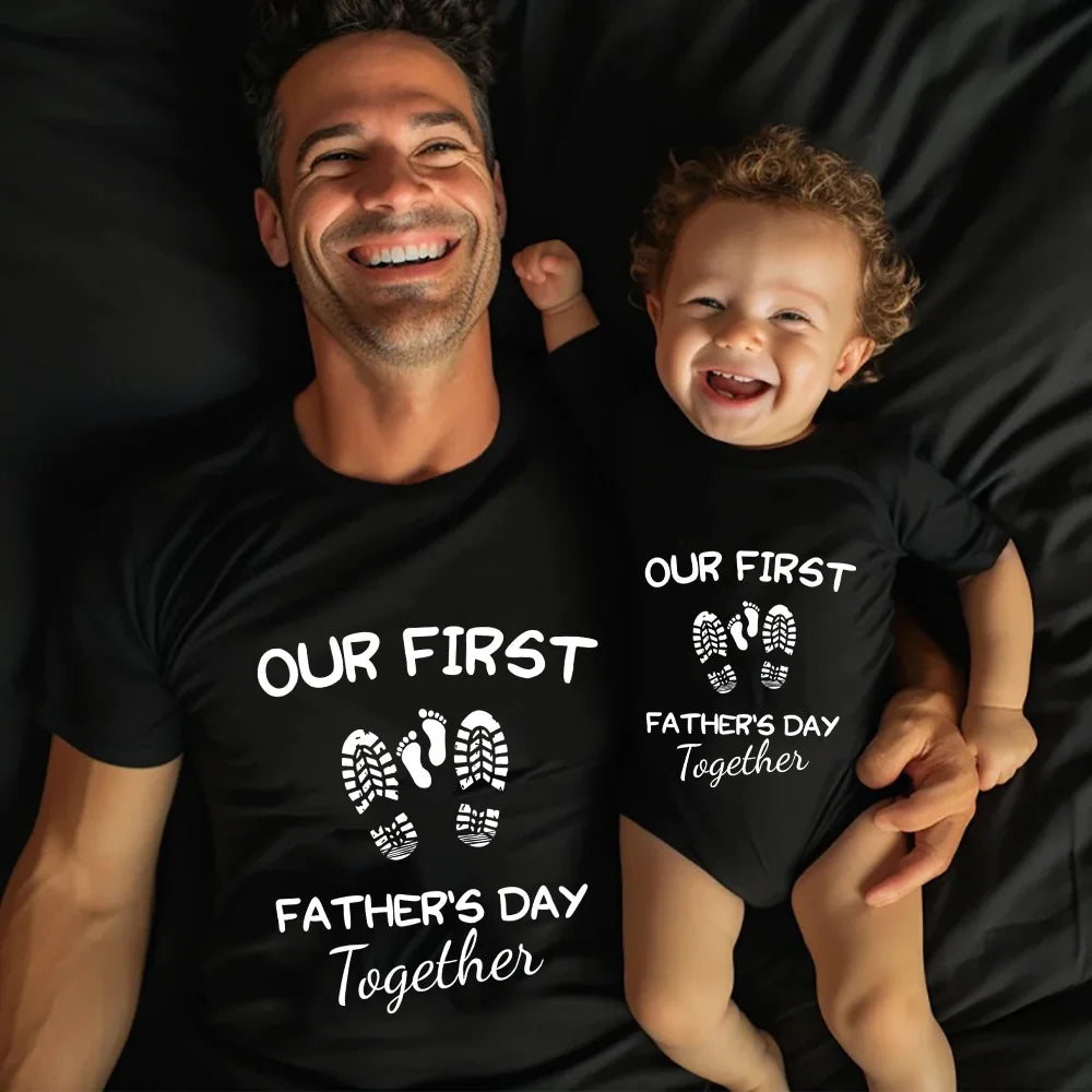 Celebrate your first Father's Day with style and joy with our Our First Father's Day Matching T-Shirts. These matching outfits are perfect for commemorating this special occasion and making lasting memories. Crafted from a comfortable and breathable fabric, they are ideal for both dad and baby.